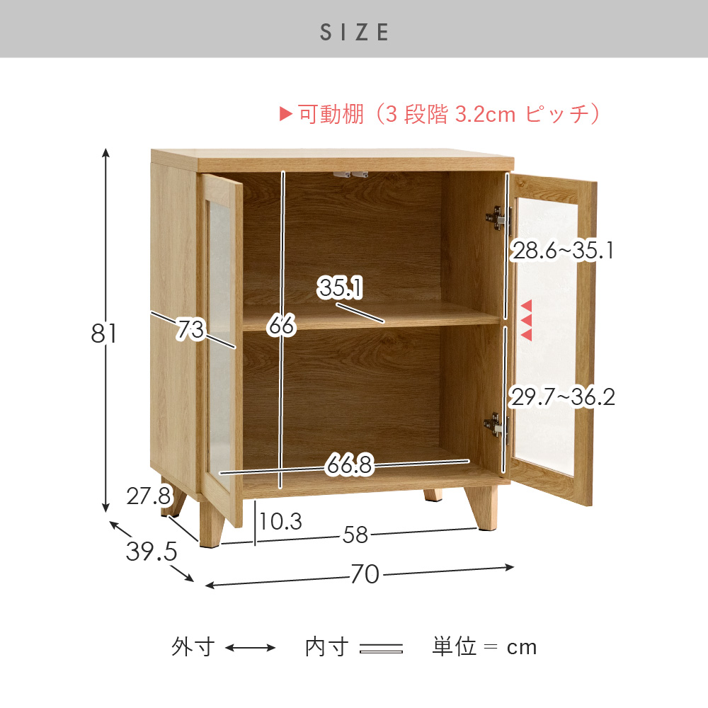 | サイズ | 約幅70×奥行き39.5×高さ81cm |