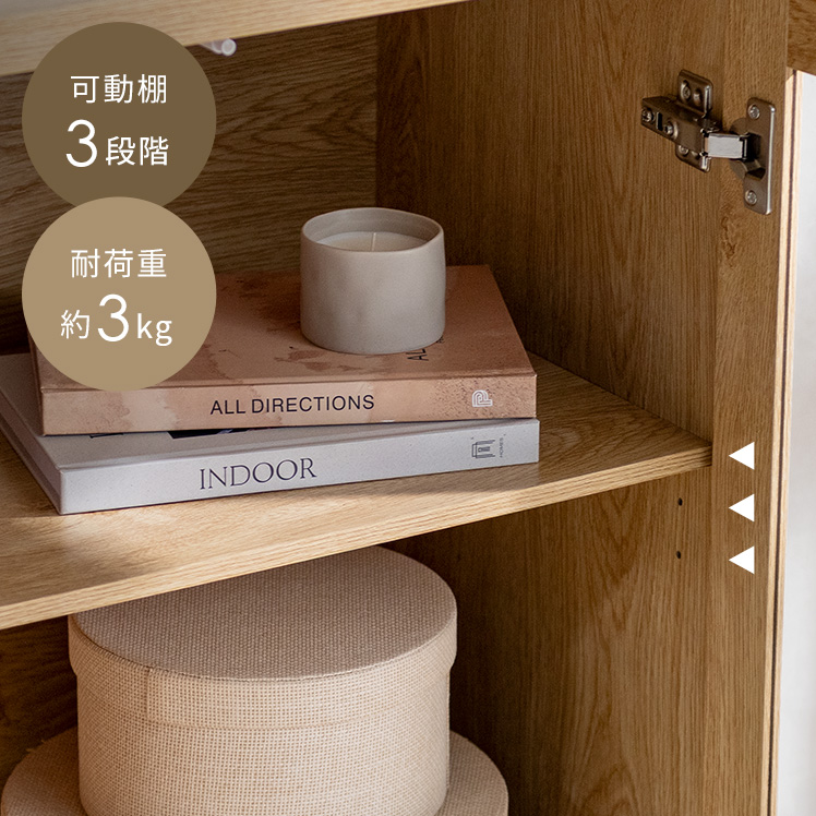 | 耐荷重 | 天板/約5kg、可動棚/約3kg、底板/約5kg |