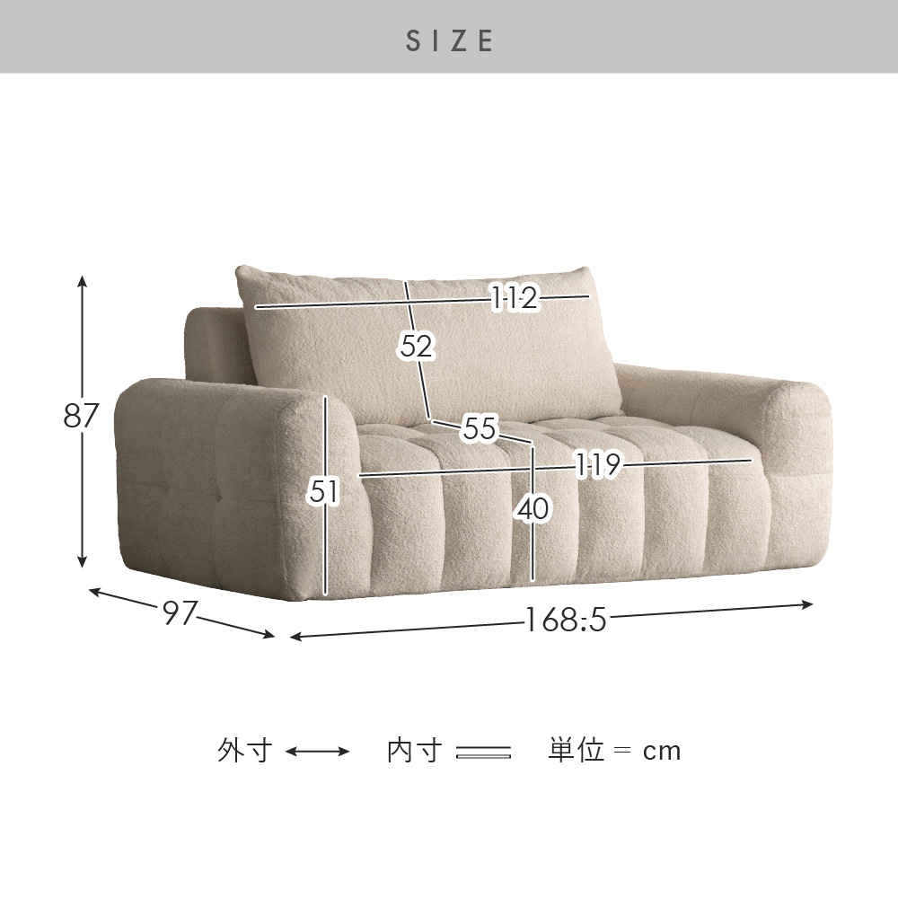 | サイズ | 幅168.5×奥行97×高さ87cm(座面高40cm) |
