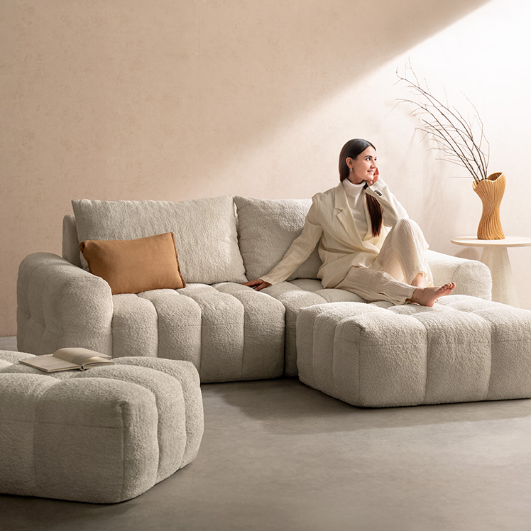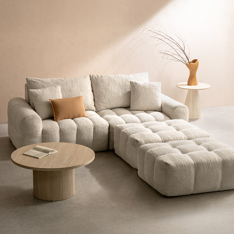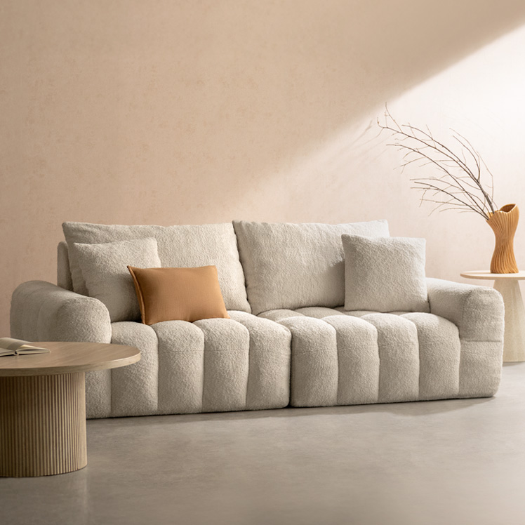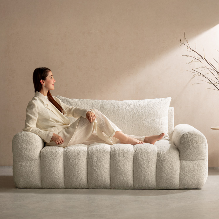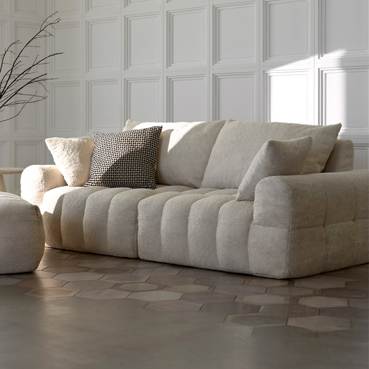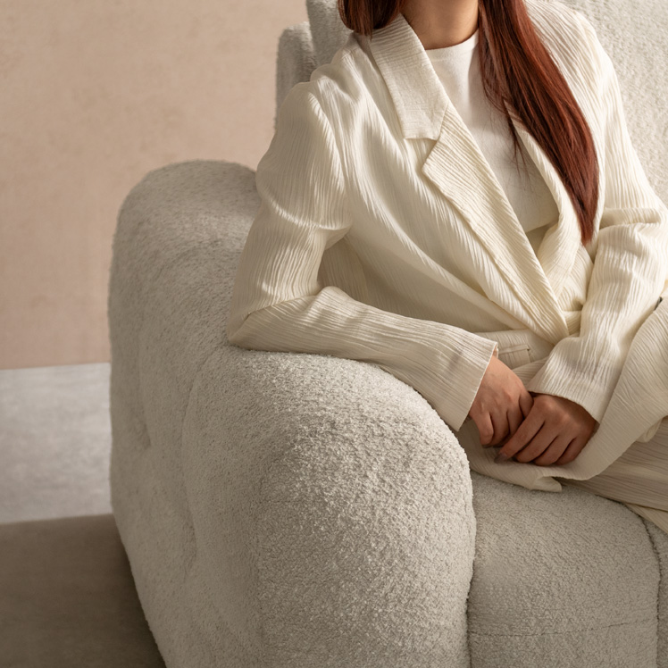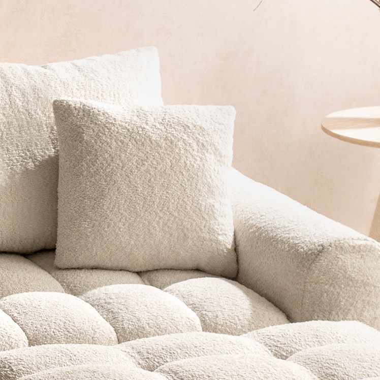 ブークレソファ Albi〔アルビー〕2.5Pタイプ/ポケットコイルを使用した贅沢な座り心地と可愛いブークレ生地が特徴のソファシリーズ『Albi(アルビー)』。ゆったり座れる座面設計とリラックスできる背もたれクッションでリラックスタイムを快適にお過ごしいただけます。2.5人掛け、3人掛け、オットマンの3タイプから組み合わせたり、お部屋の広さやお好みでお選びいただけます。