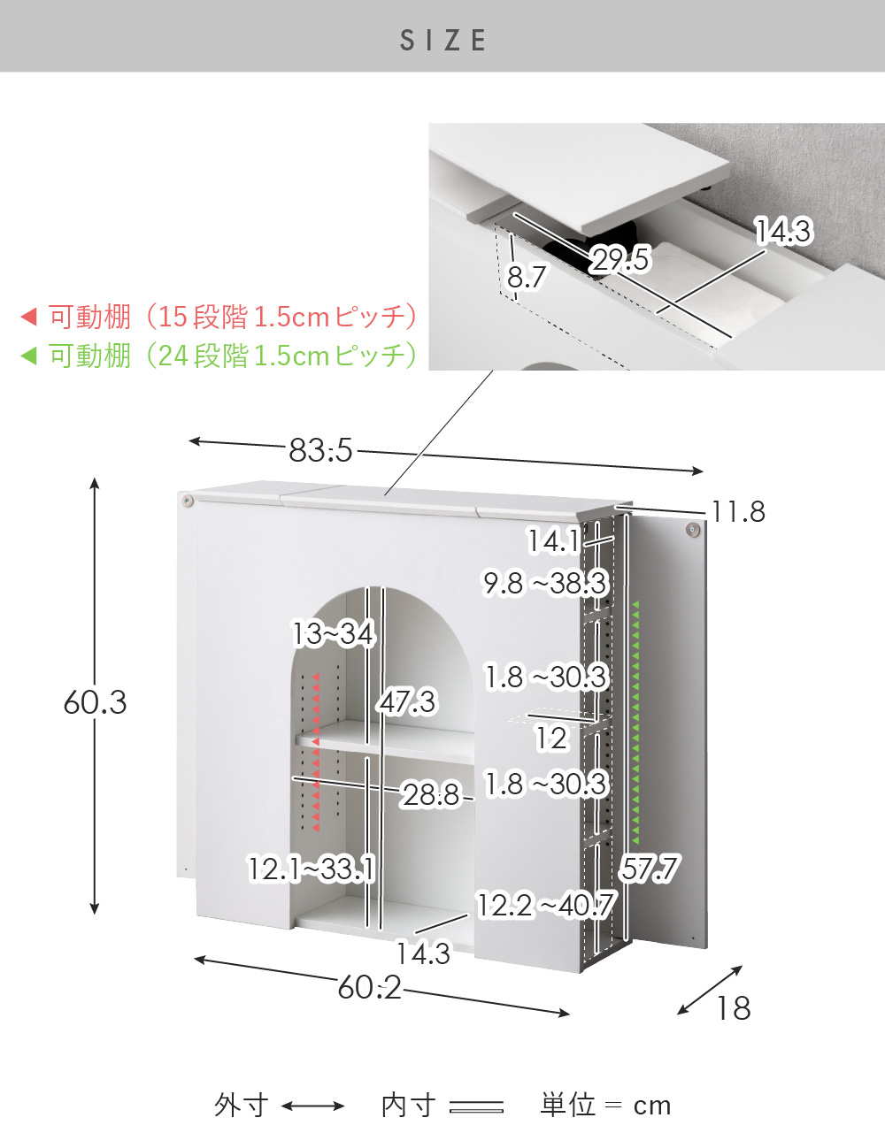 | 材質 | 合成樹脂化粧板(メラミン) |