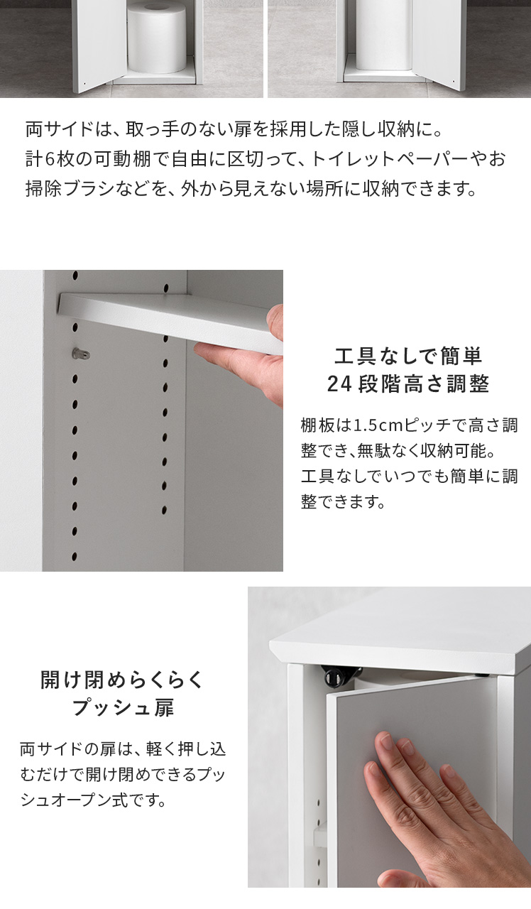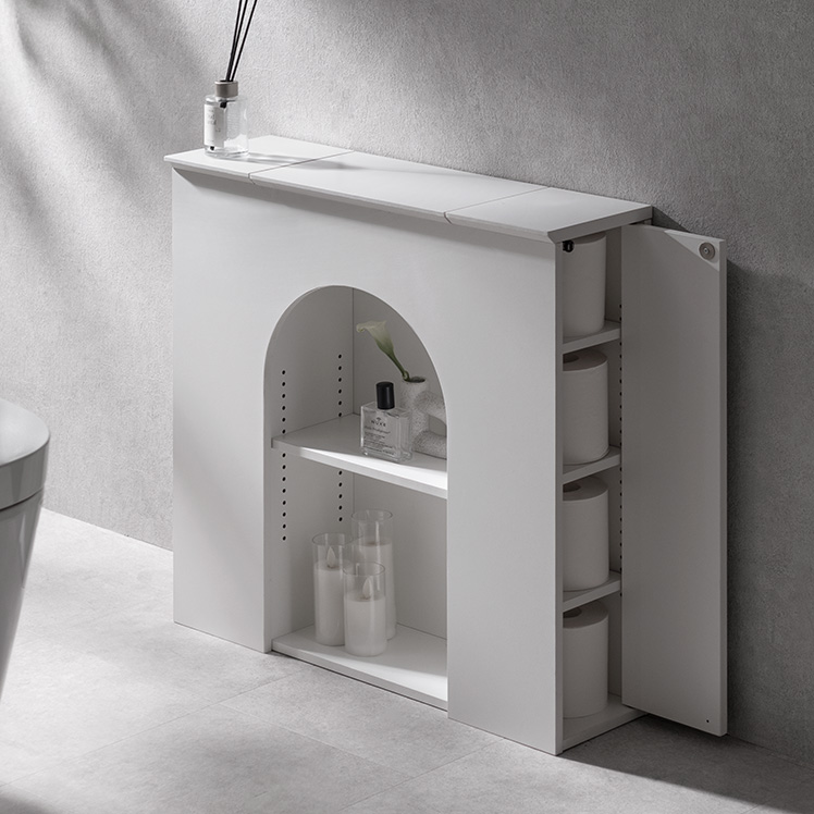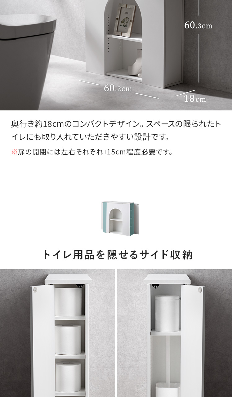 トイレットペーパー マントルピース 収納トイレ トイレラック 収納棚 飾る収納 隠す収納 コンパクト サイド収納 プッシュ扉 アーチ窓 お手洗い 棚 コンパクトラック スリム おしゃれ 省スペース 可動棚 ラック 掃除用具入れ シンプル モダン 北欧 レトロ 白色 木製 ホワイト