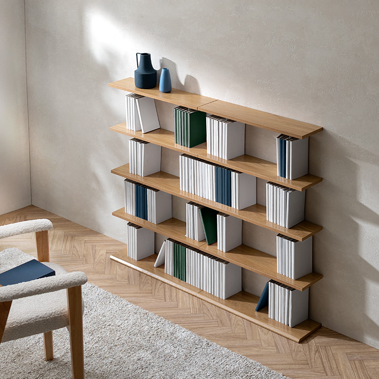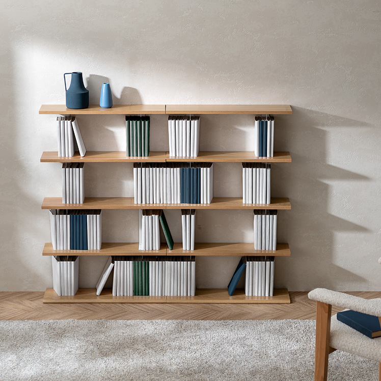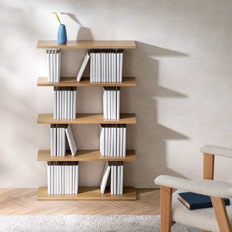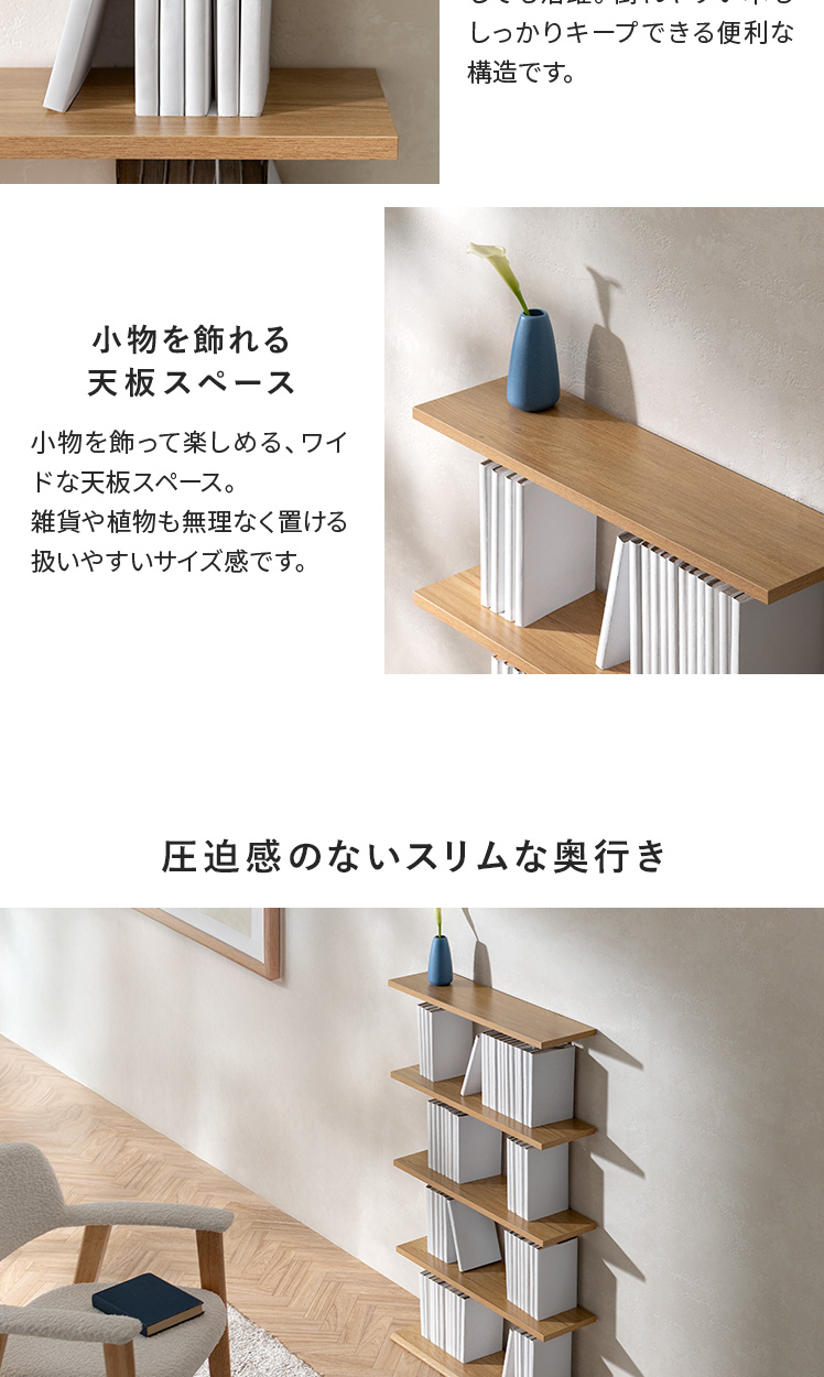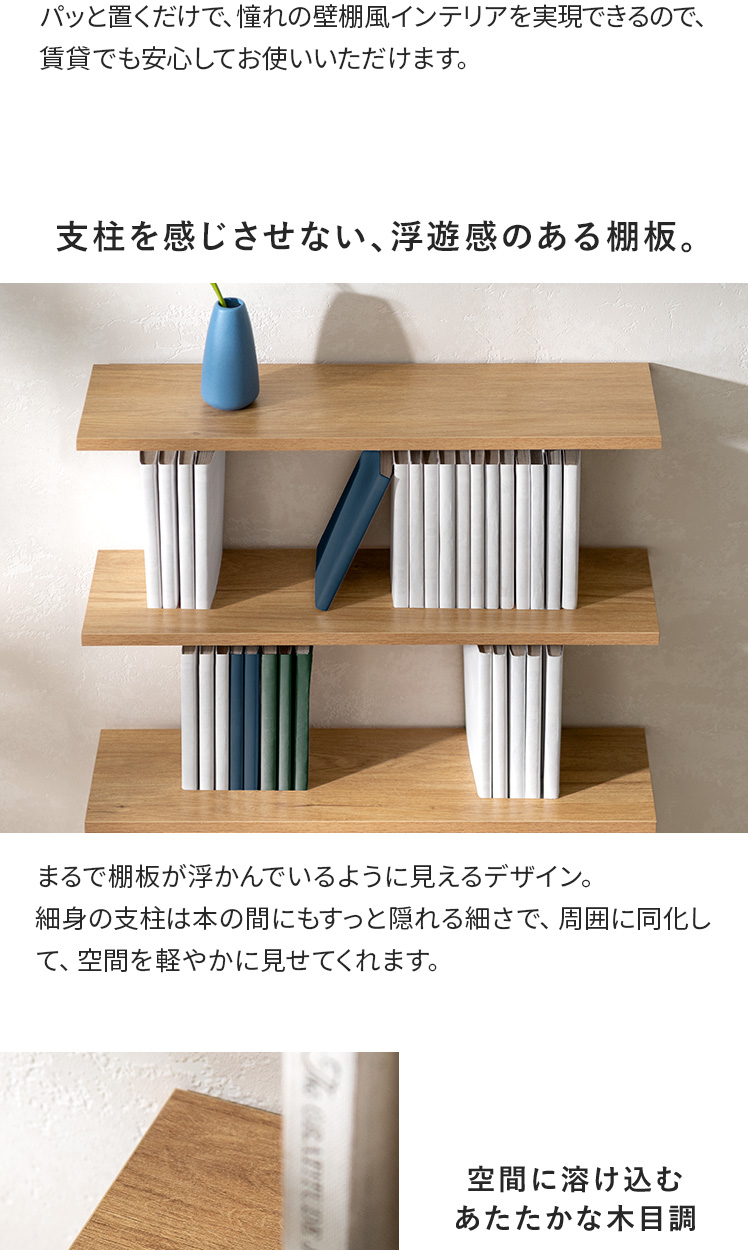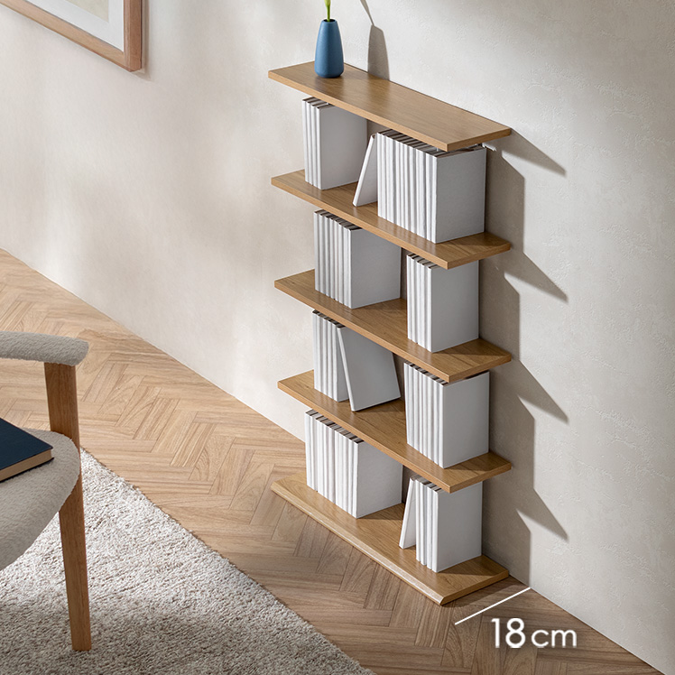 壁棚風コミックラック Curalina〔クラリナ〕/壁棚のように、そっとお部屋に溶け込むコミックラック。壁にネジ穴を開けることなく、床に置くだけで憧れの“壁棚風ディスプレイ”が叶います。薄型ながら、最大156冊をすっきり収納。本が並ぶ景色さえ、インテリアになる一台です。