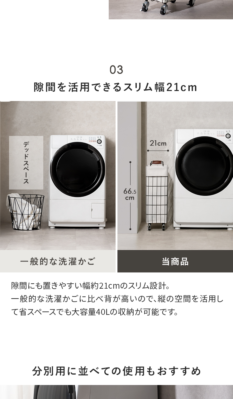 ランドリーバスケット ワゴン 洗える 幅21cm ファブリック