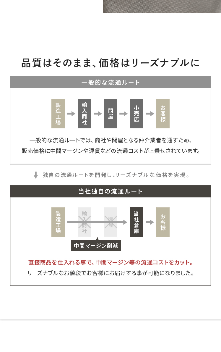 | 備考 | 完成品、カバー手洗い可能(洗濯機・乾燥機は使用不可) ※本体内部の生地には内側撥水加工が施されており、生産工程やご使用を重ねる中で、生地が折れることにより白い傷のようなものがつく場合がありますが、使用上問題ございません。 ※若干の個体差により、表記サイズと多少の差異が生じる場合がございます。 |