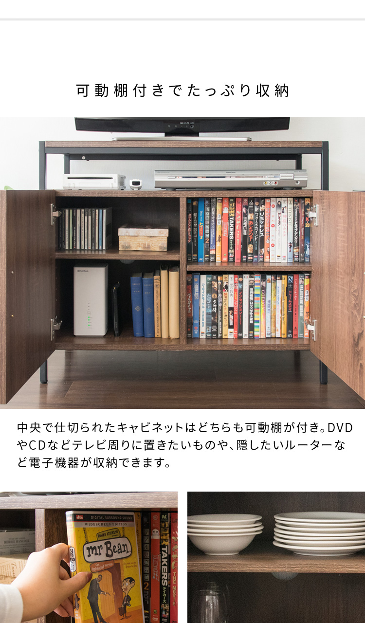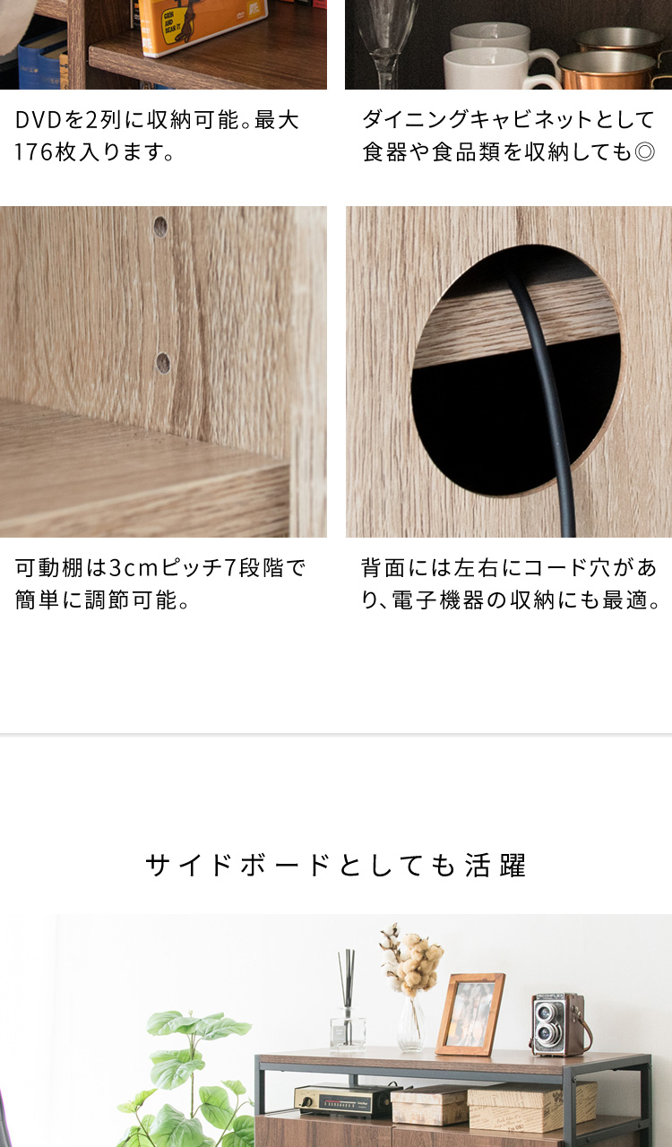 可動棚 食器棚 コード穴 アジャスター付き DVD収納 収納