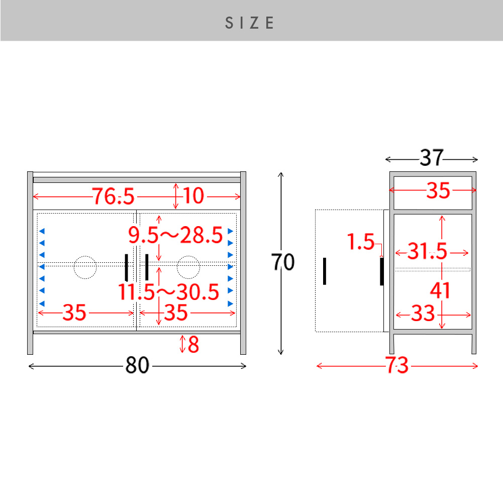 | サイズ | 約幅80×奥行き37×高さ70cm |