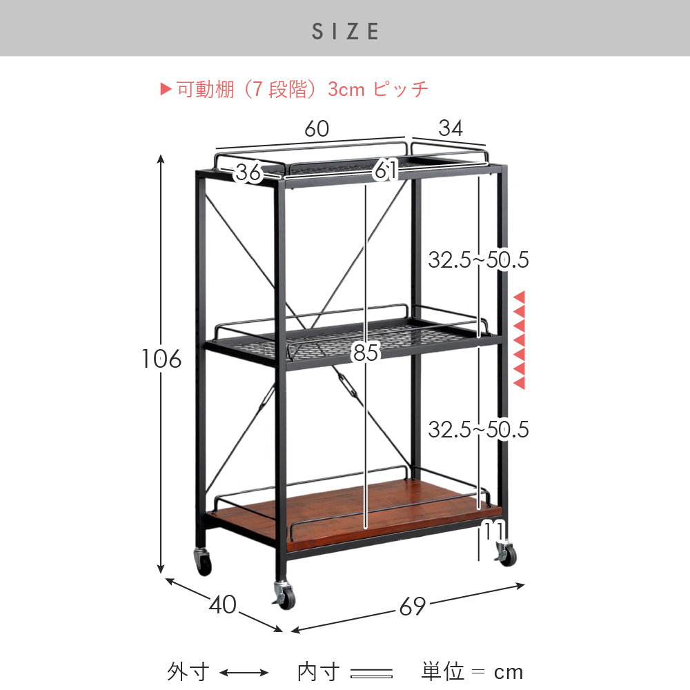 | 可動棚(中段) | 7段階、約3cm間隔で調整可能 |