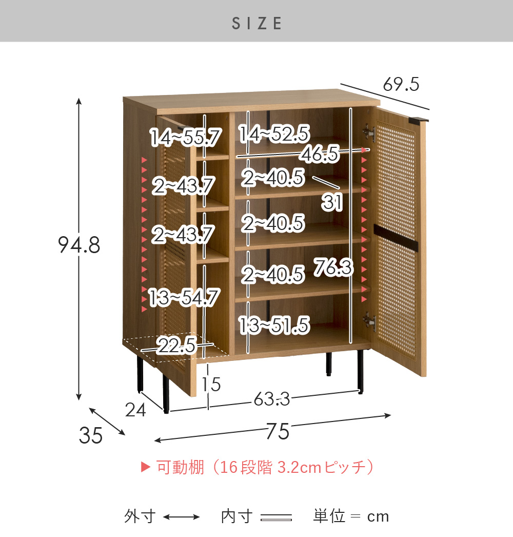 | サイズ | 約幅75×奥行き35×高さ94.8cm |