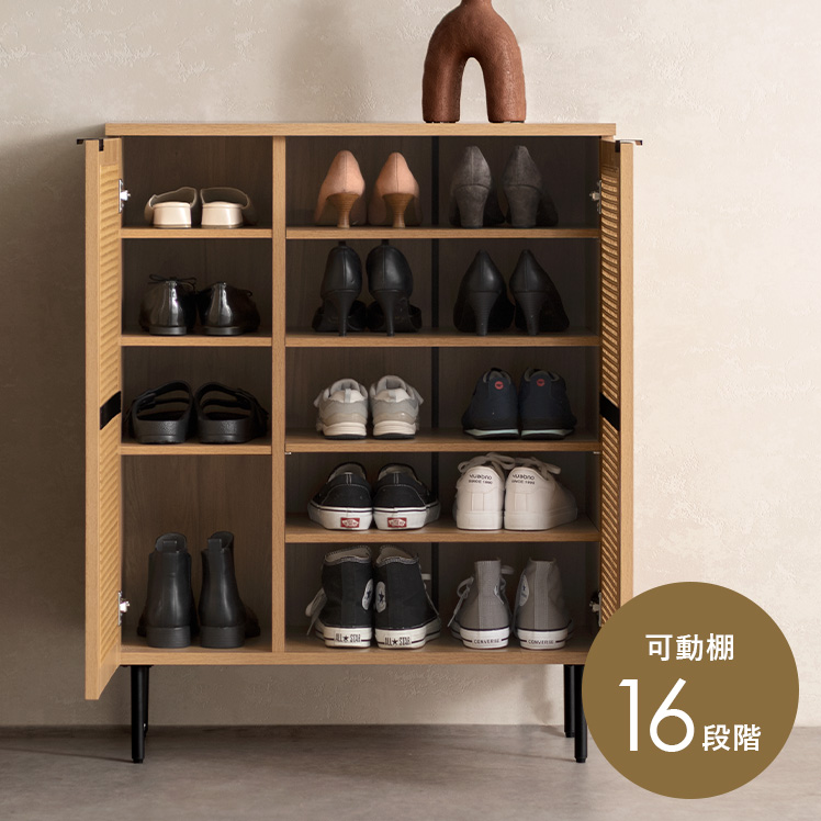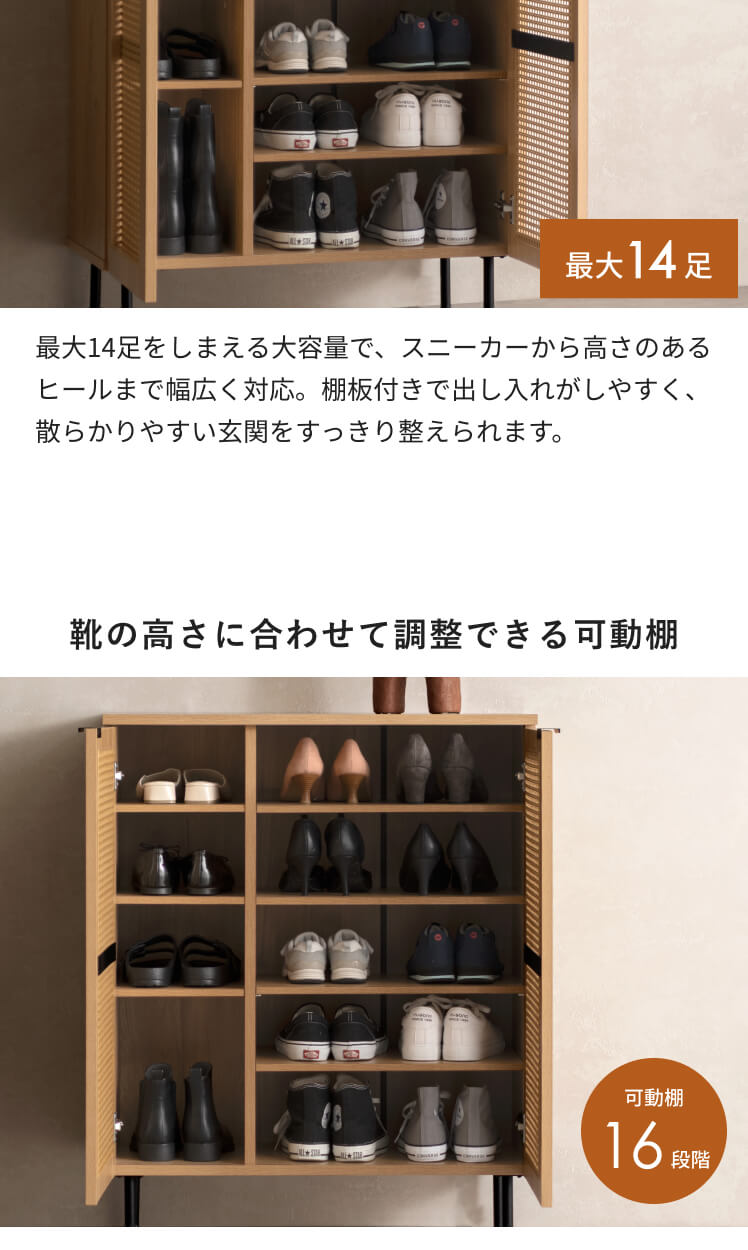 玄関 棚 ワイド 扉棚 5段 14足 可動棚 靴収納 靴箱 通気性