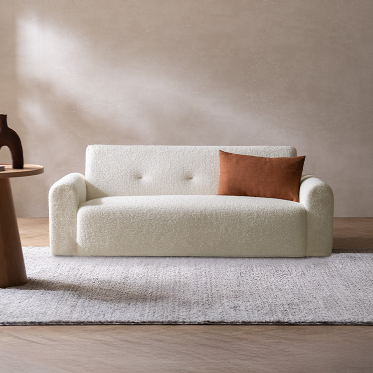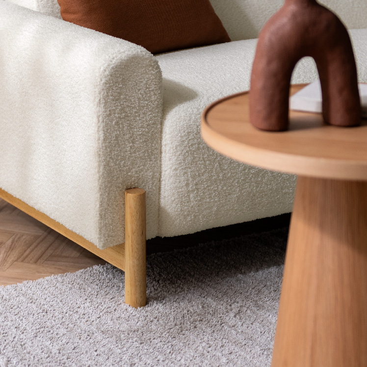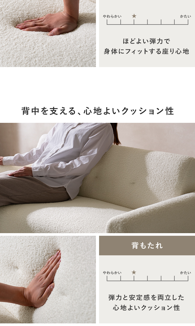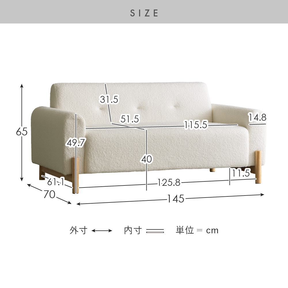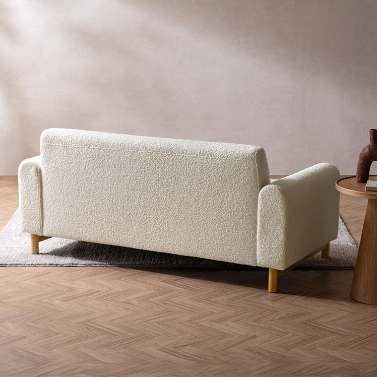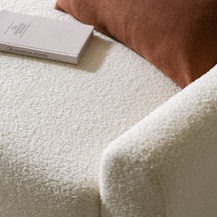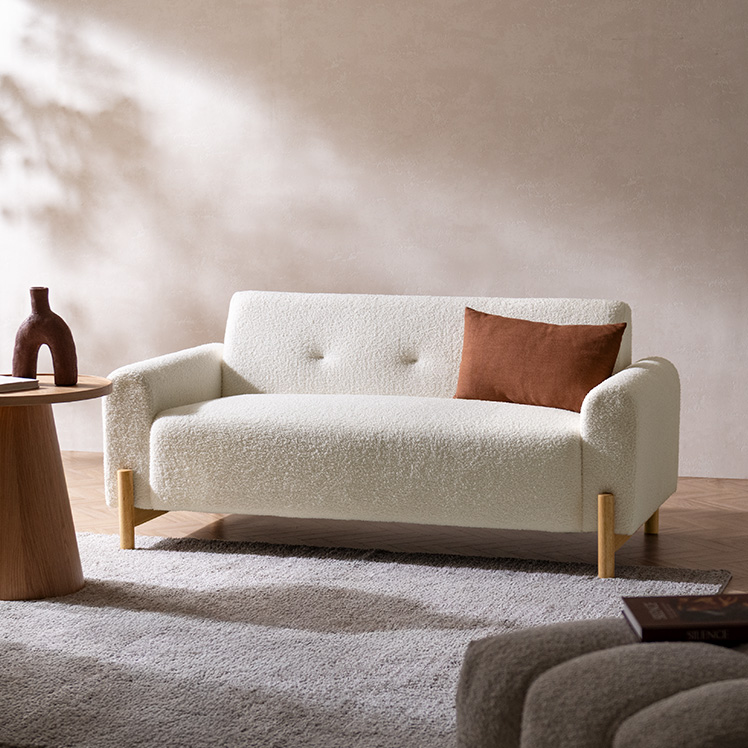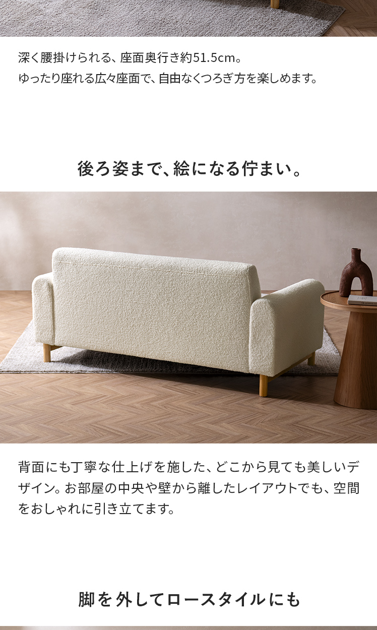 ブークレ調ソファ MOKKA〔モッカ〕/柔らかなブークレ生地と抜け感のある天然木脚が調和し、空間をやさしく彩る2人掛けソファ“MOKKA(モッカ)”幅145cmでお部屋にすっきり収まりながら、ゆったりとくつろげるバランスの良さが魅力です。
