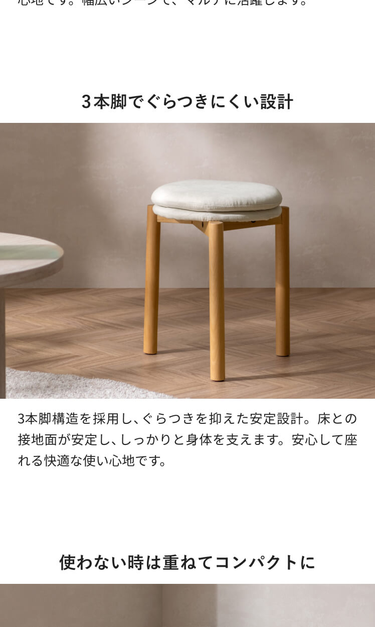 スツール おしゃれ 北欧 チェア チェアー 椅子 丸椅子 イス 玄関 ダイニング リビング アンティーク カフェ シンプル デザインスツール クッションスツール 天然木 ファブリック 布 ナチュラル 子供部屋 3本脚 重ねて収納 コンパクト フェルト付き 頑丈 ホワイト グレー グリーン