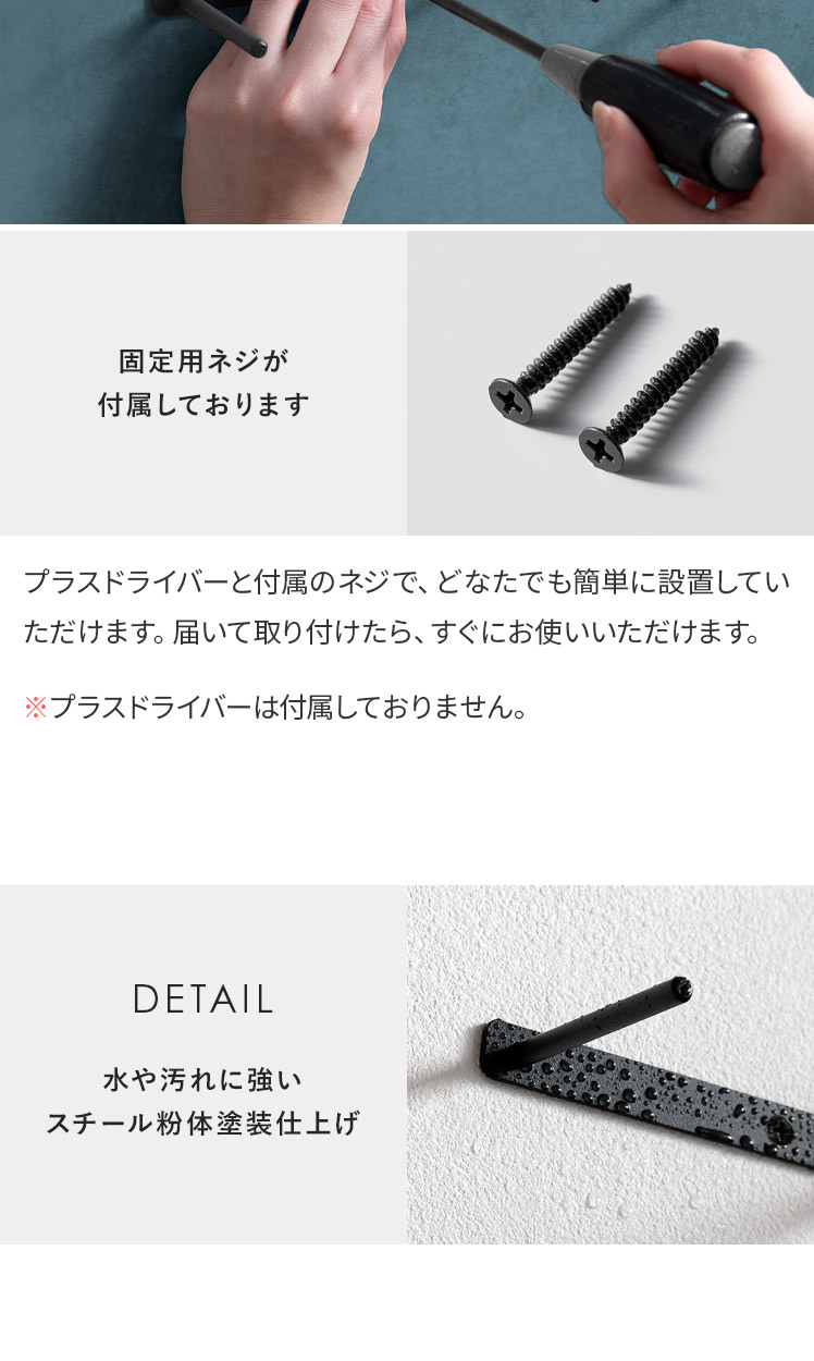 | 備考 | 完成品(取り付け必要)、取り付け用ネジ付属 ※要プラスドライバー ※若干の個体差により、表記サイズと多少の差異が生じる場合がございます。 |