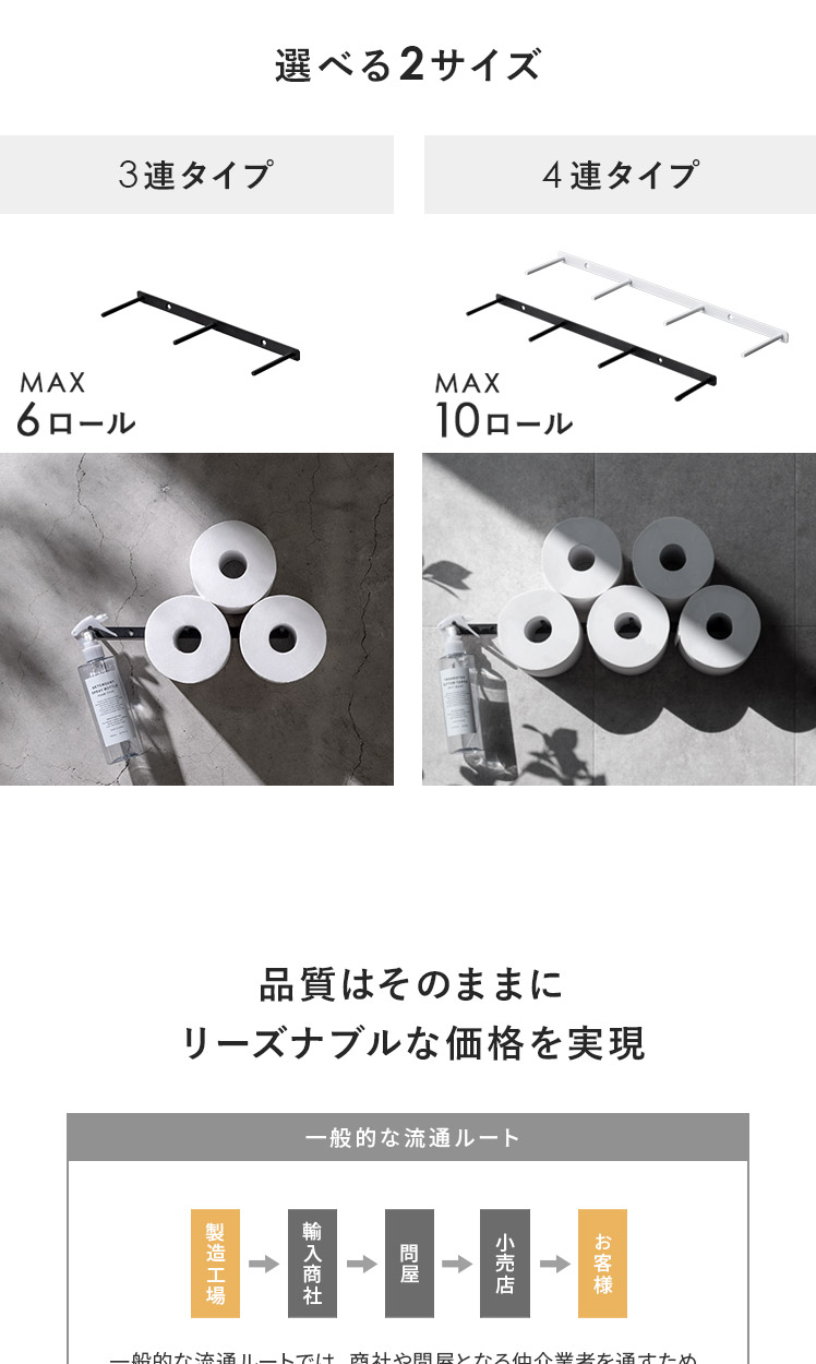 壁付けトイレットペーパーラック Alana(アラナ) 3連タイプ