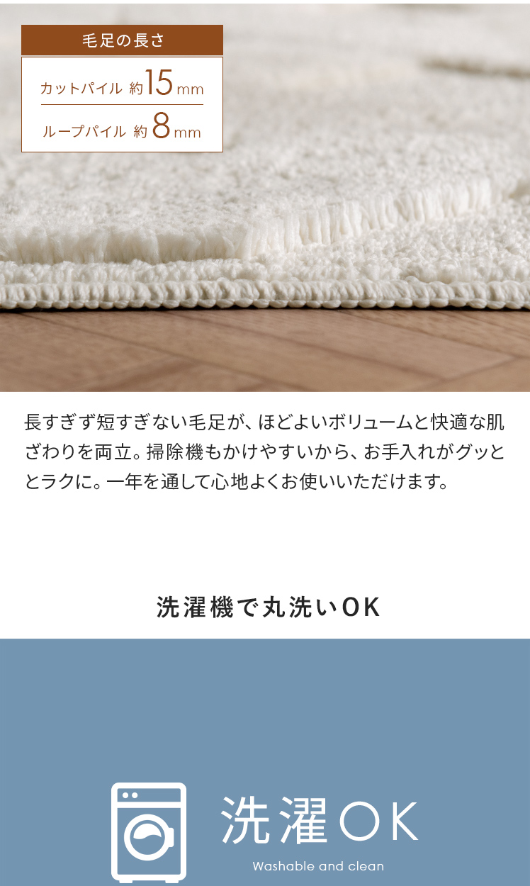 ループパイル オールシーズン 洗濯OK 洗濯可 洗える