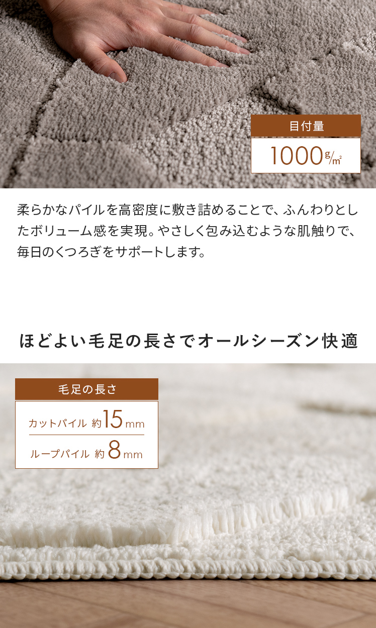 ループパイル オールシーズン 洗濯可 丸洗い 滑り止め ホットカーペット対応 床暖房対応