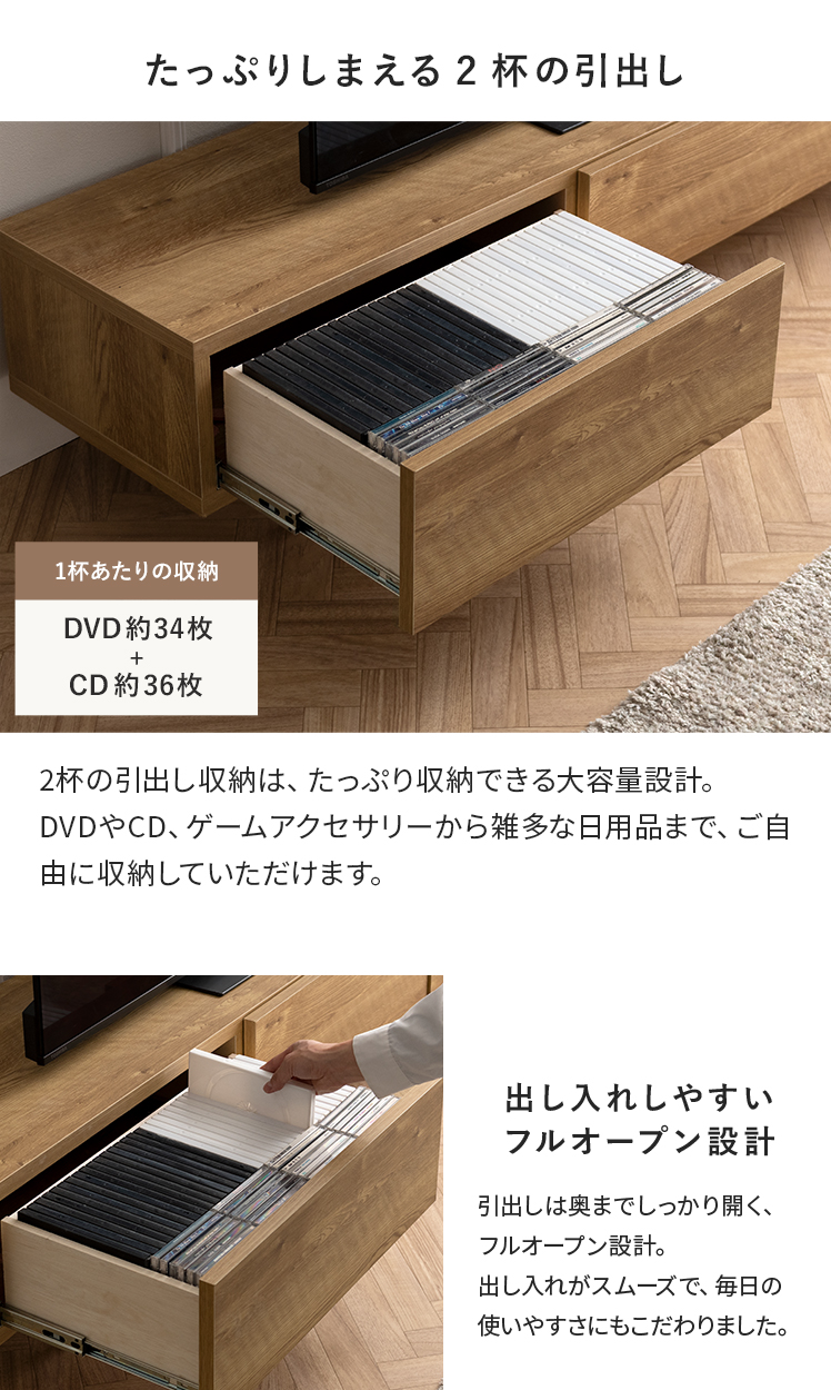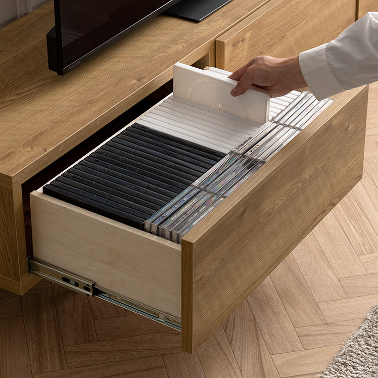 引き出し フラップ収納 フルオープン スライドレール AV収納