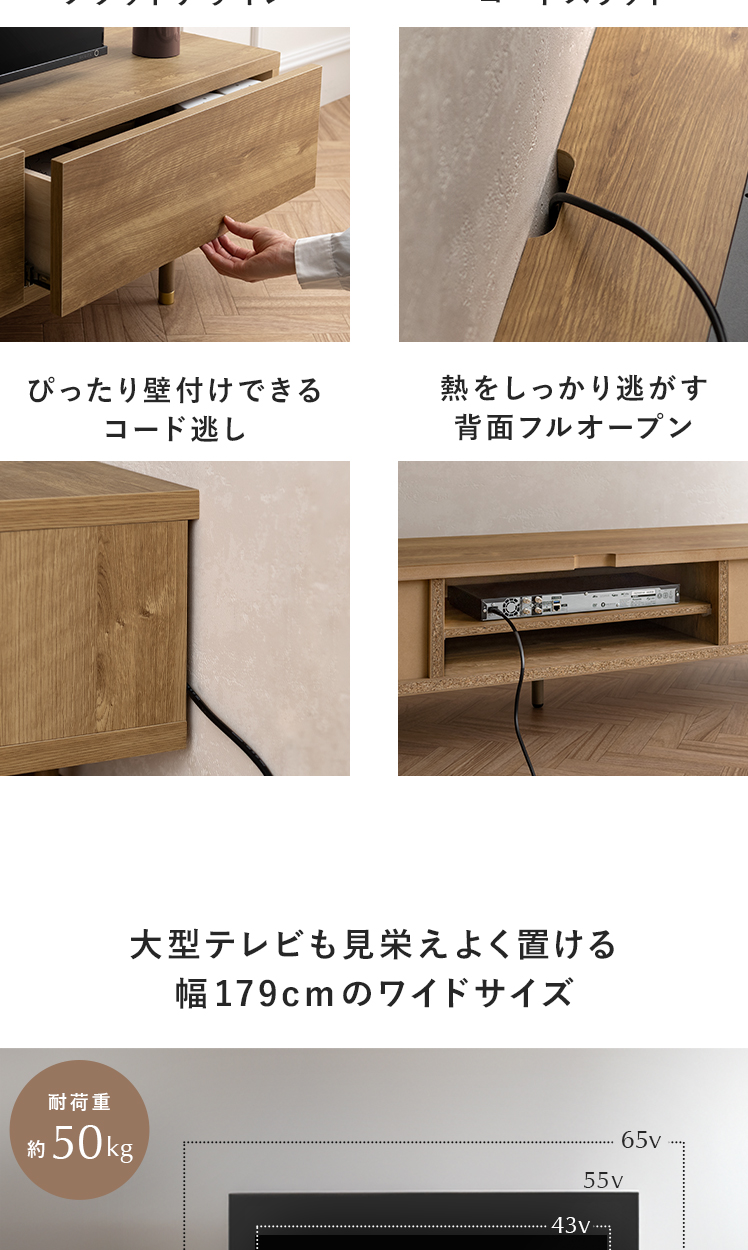 収納家具 ヴィンテージ 65インチ シンプル ナチュラル