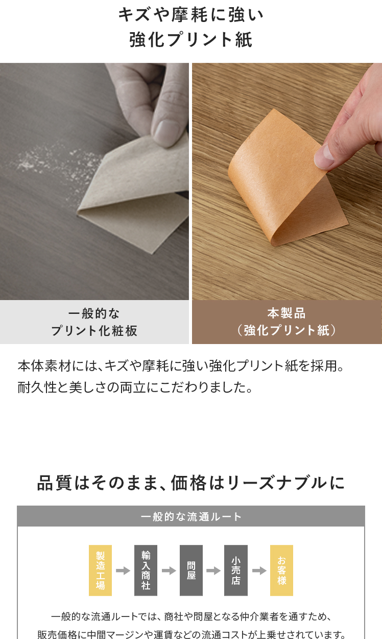 | 材質 | プリント化粧板、ラバーウッド無垢 |