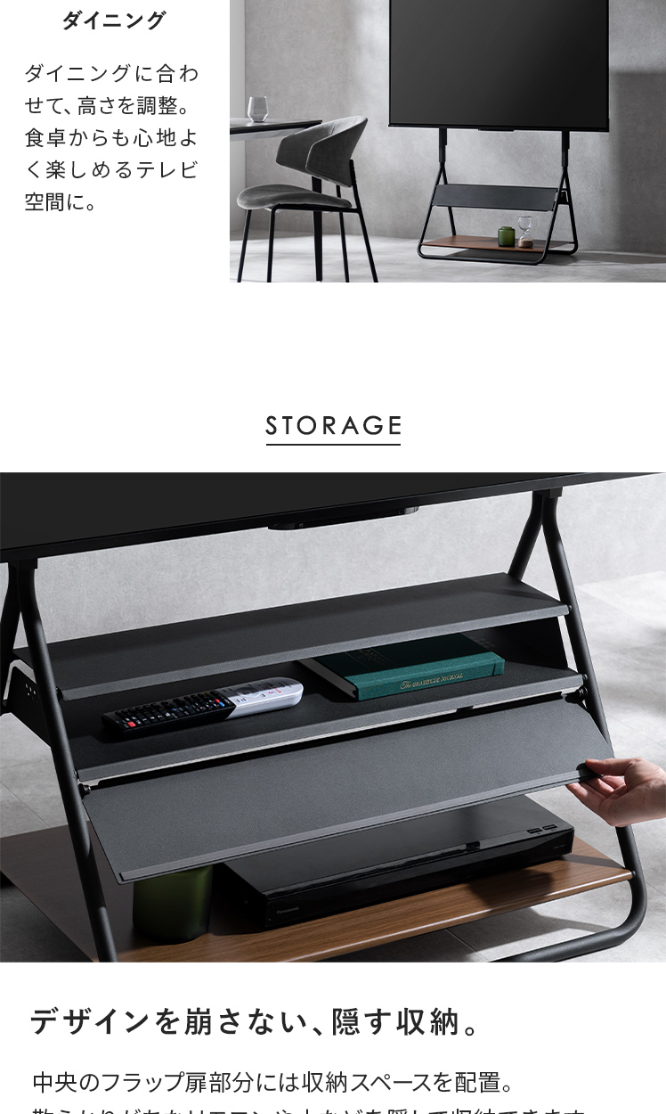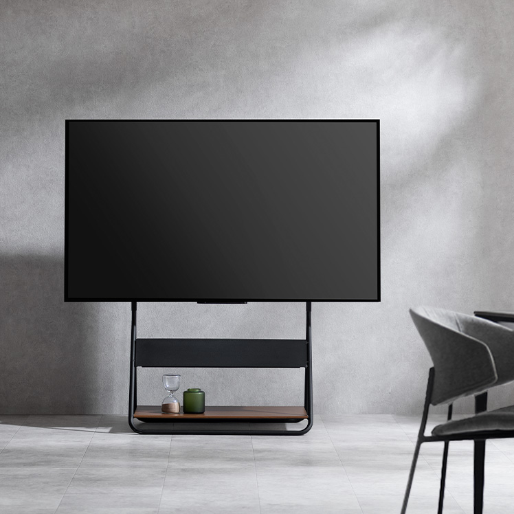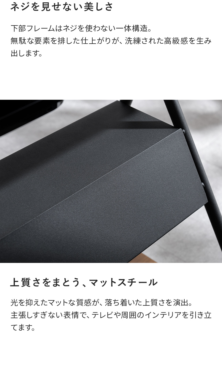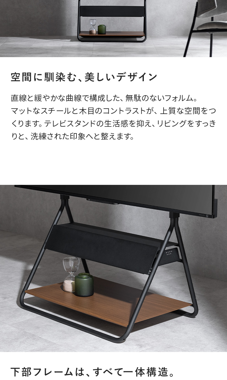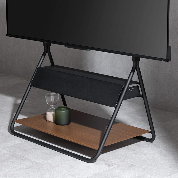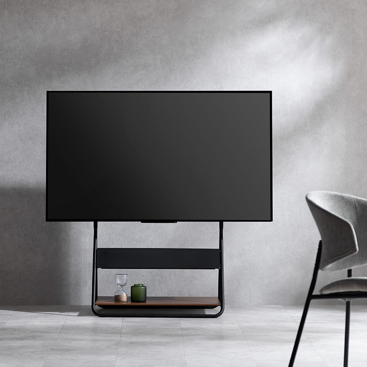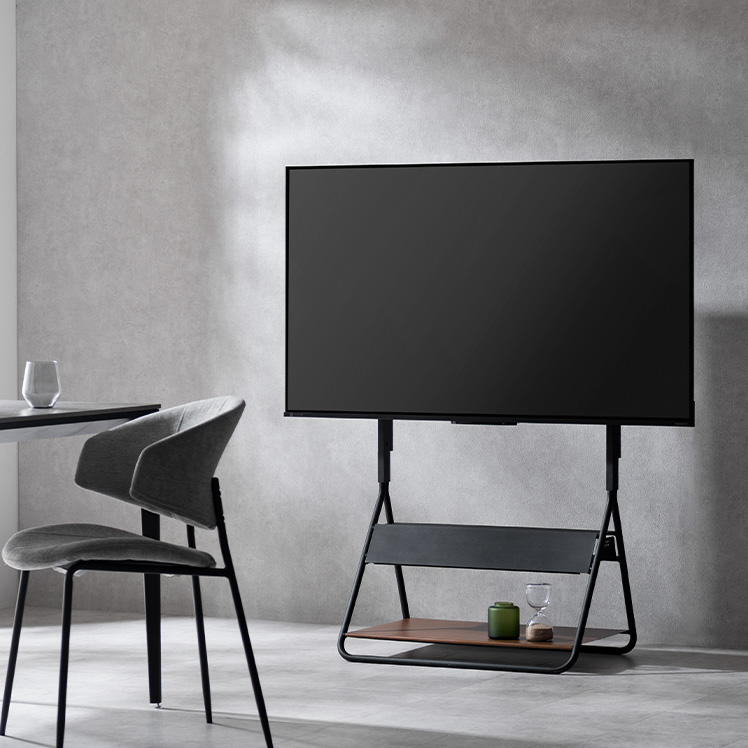 テレビスタンド RIGT〔リグト〕/テレビを支えるための道具ではなく、インテリアとして空間に成立するかたちを追求しました。生活感が出やすいテレビまわりを、すっきりと美しい風景に整えます。