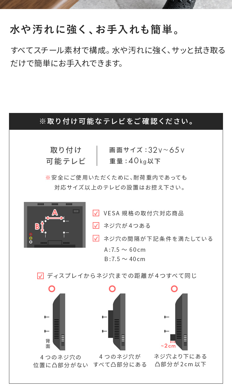 | 対応テレビサイズ | 32〜65型 |