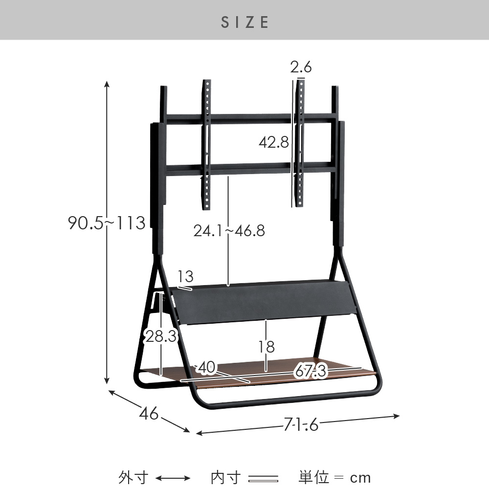 | 耐荷重 | テレビ部/約40kg、固定棚/約5kg、底板/約10kg |
