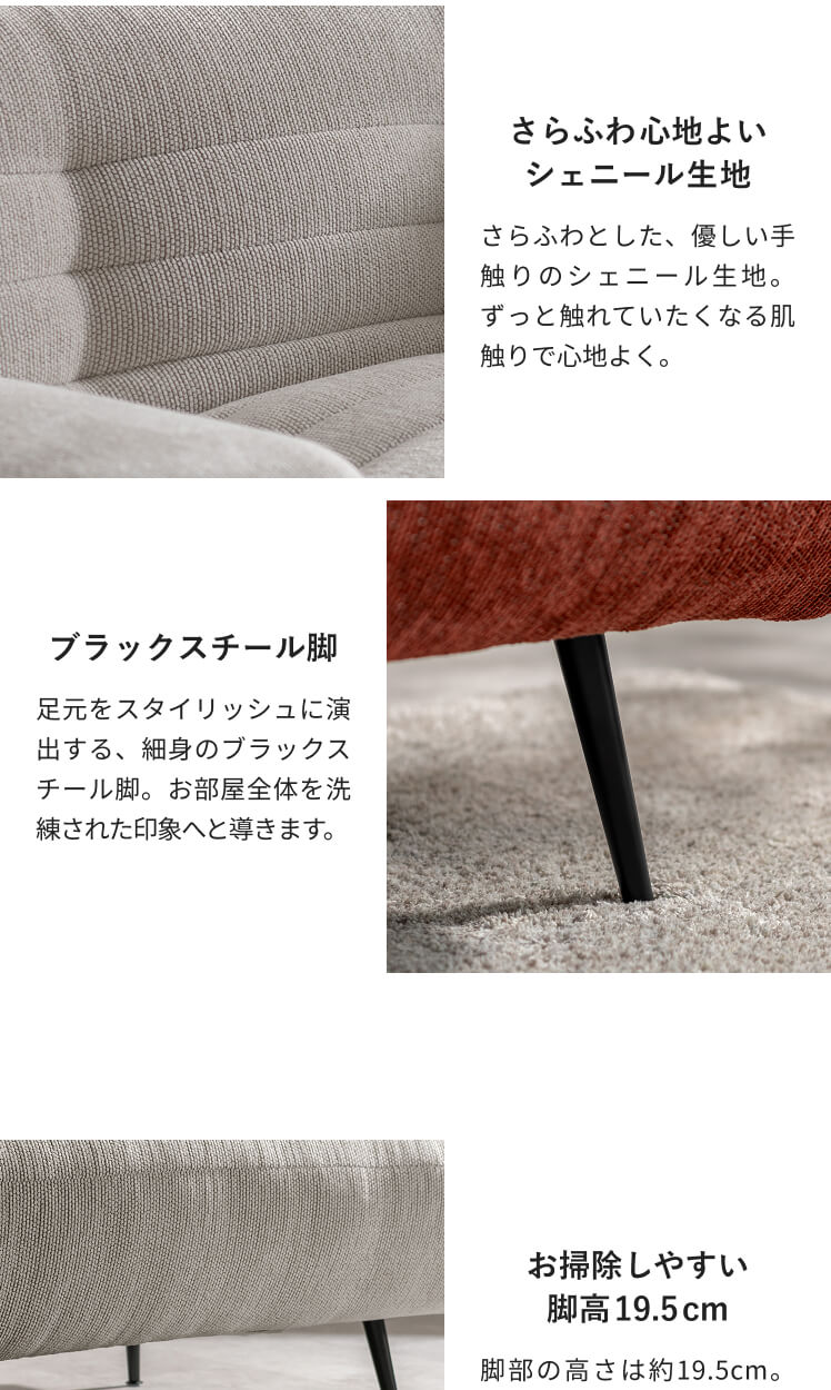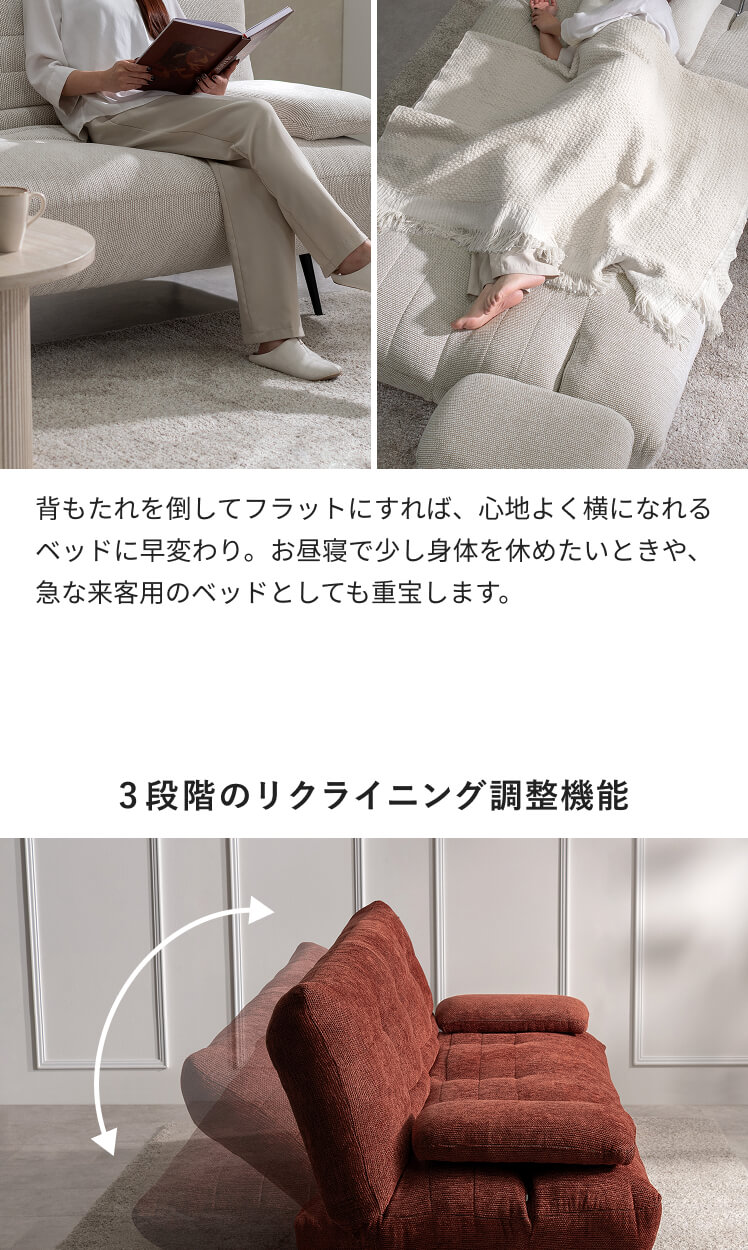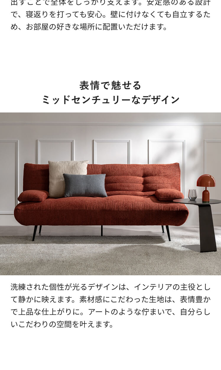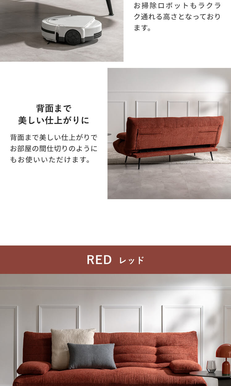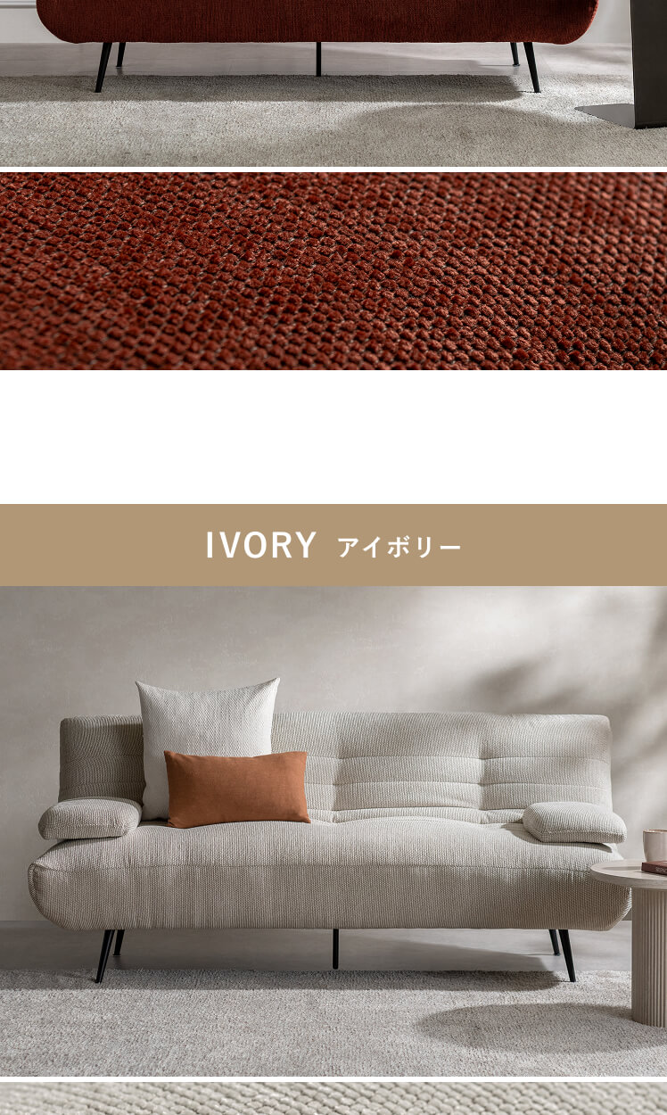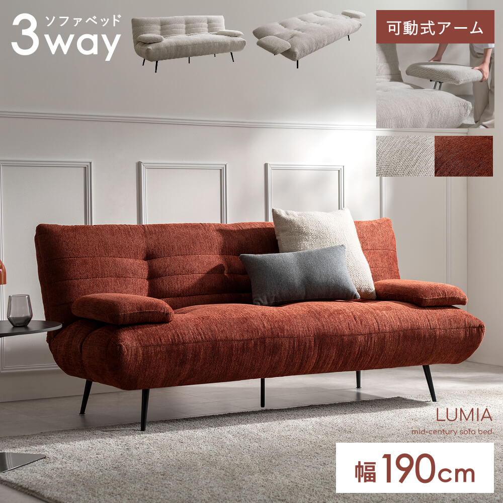 ソファ ソファー ソファベッド ソファーベッド シェニール生地 スチール脚 可動式アーム ミッドセンチュリー ウレタン ワイド 3P 3人掛け 2人掛け おしゃれ 2way 韓国 韓国風 韓国インテリア コーデュロイ 布張り 3段階 お掃除ロボット対応 ゆったり 広々 リクライニング ポケットコイル 幅190cm レッド アイボリー