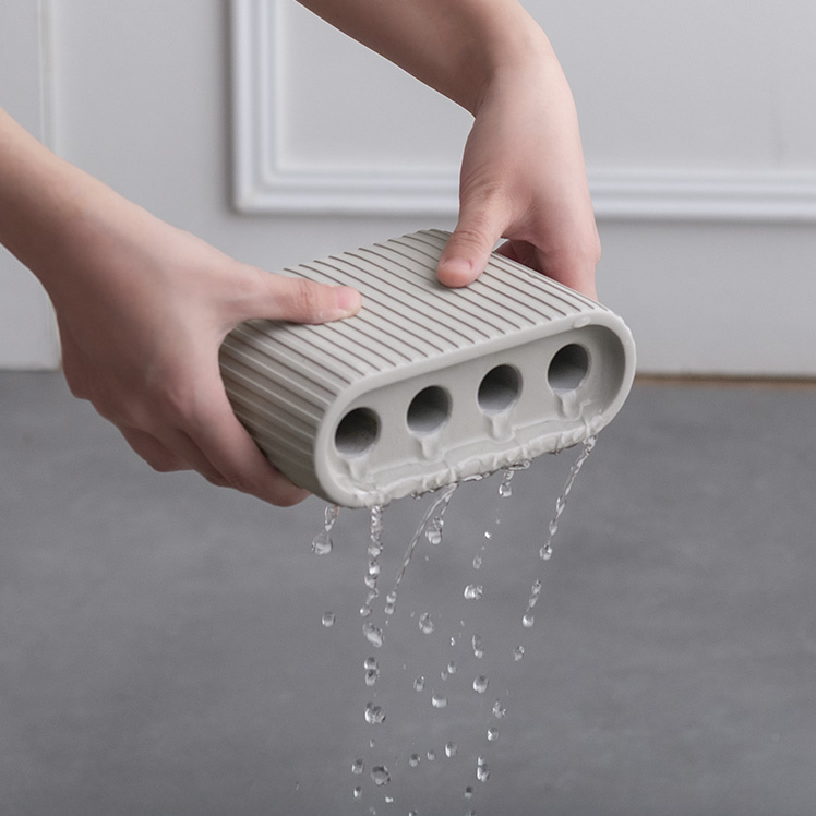 アンブレラスタンド CONCREIN〔コンクレイン〕/玄関の限られたスペースに収まる、コンパクトな傘立て。ミニマルなデザインで、空間をすっきりと整えます。上部を受け皿状にくぼませ、雨水を受け止める構造により、濡れた傘も安心して収納できます。