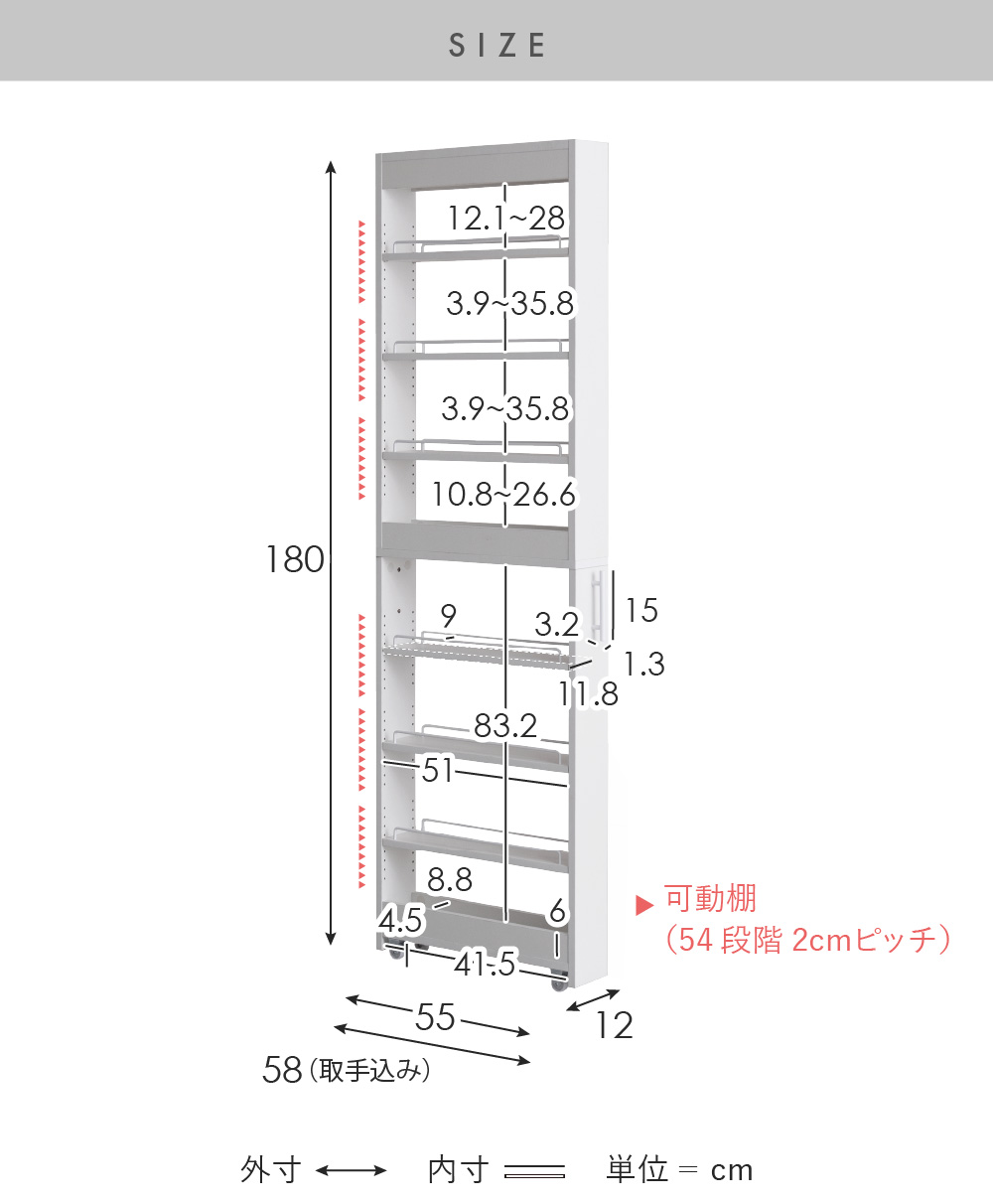 | サイズ | 約幅12×奥行き55(取手込み58)×高さ180cm |