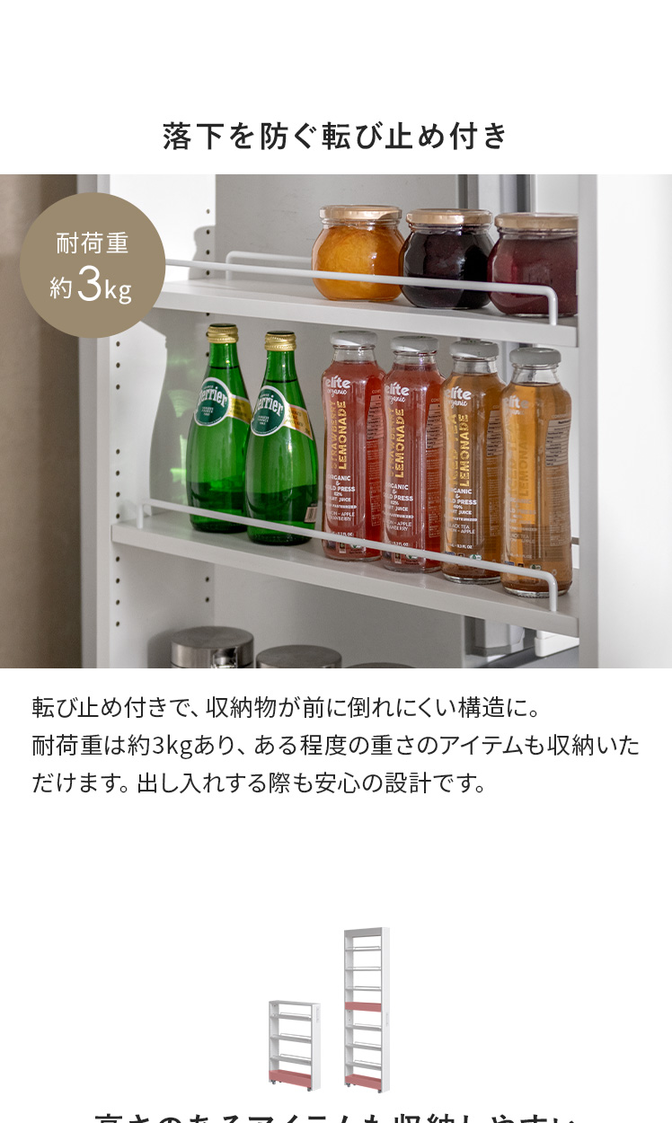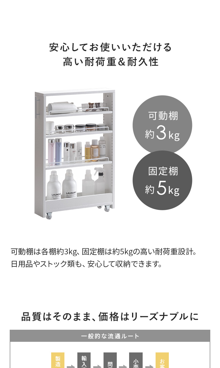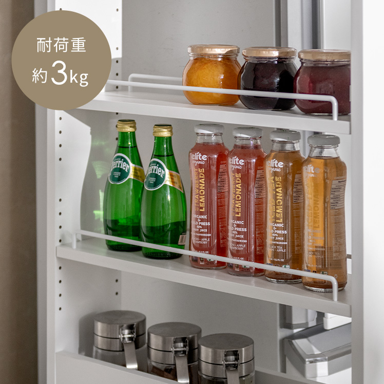 | 耐荷重 | 可動棚/約3kg、固定棚/約5kg |