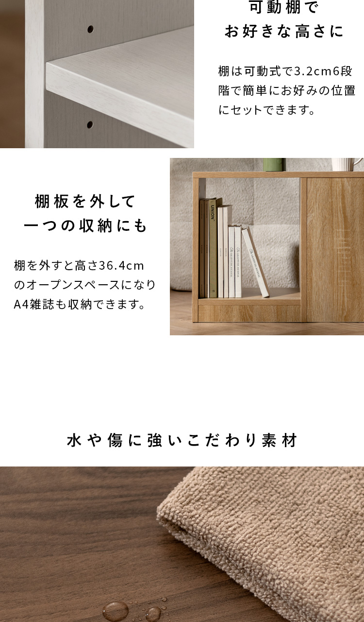 カウンター 省スペース 可動棚 収納棚 木目調 扉付き