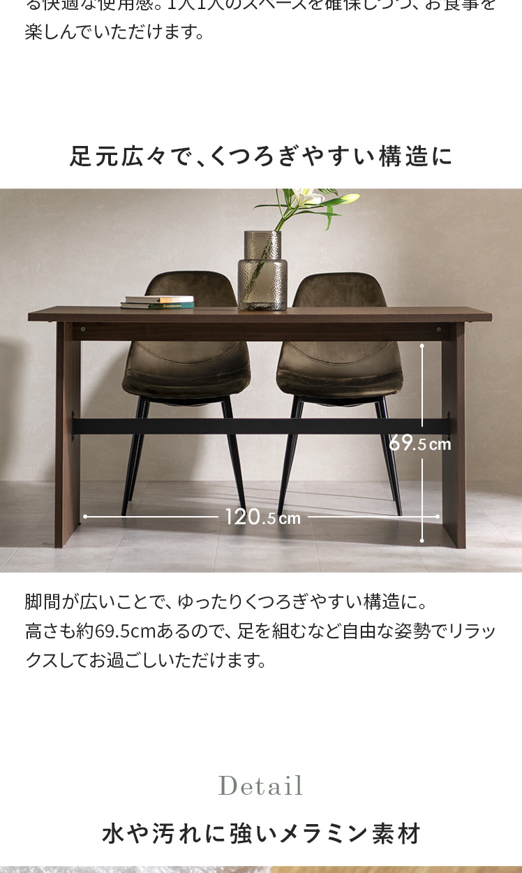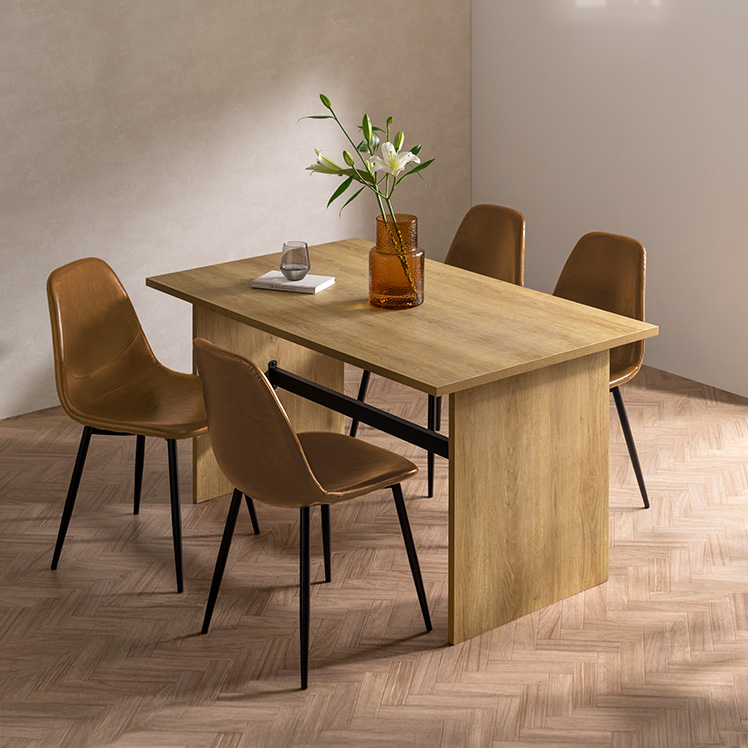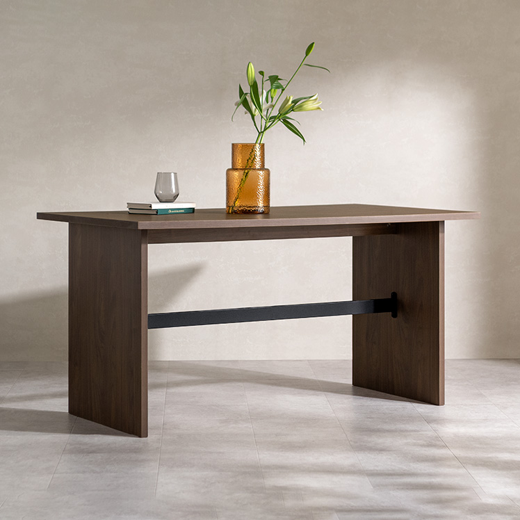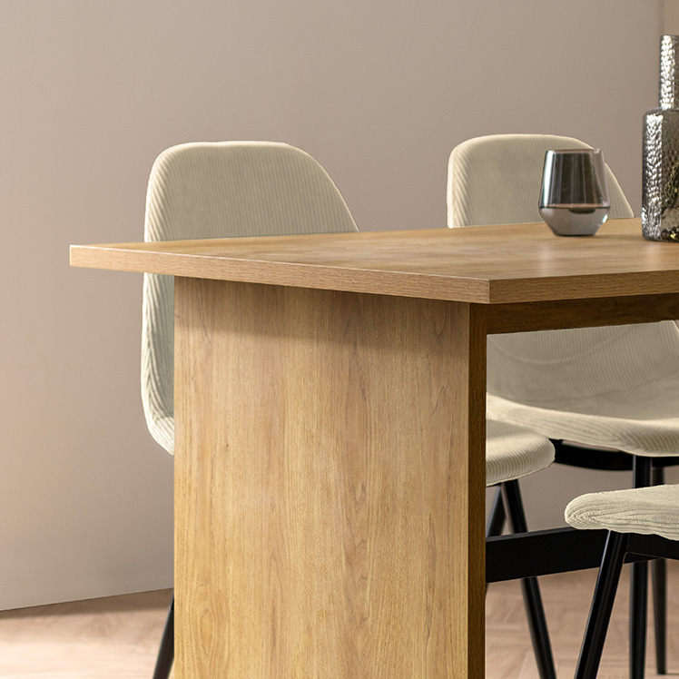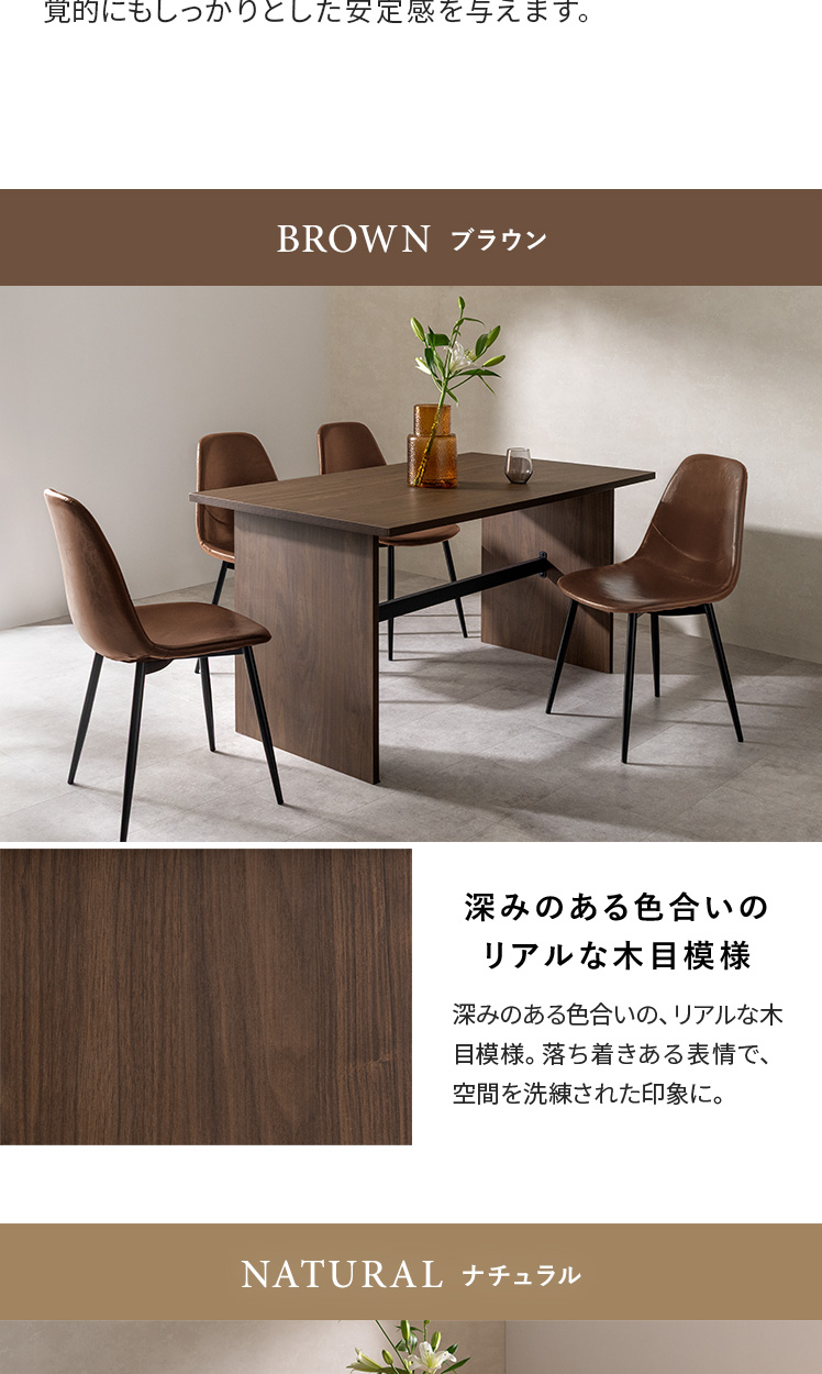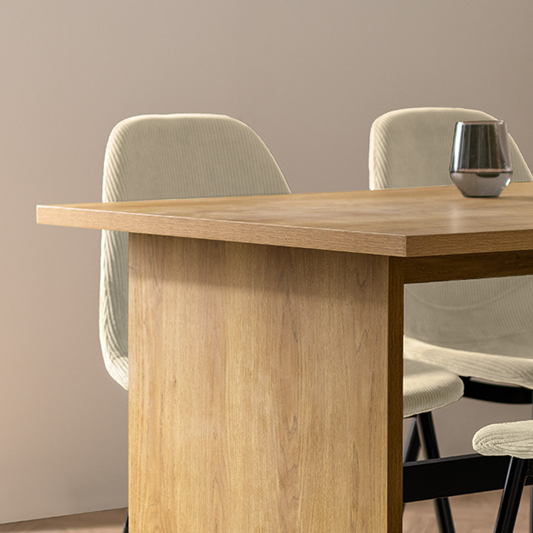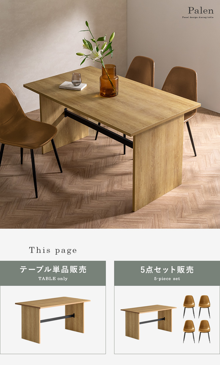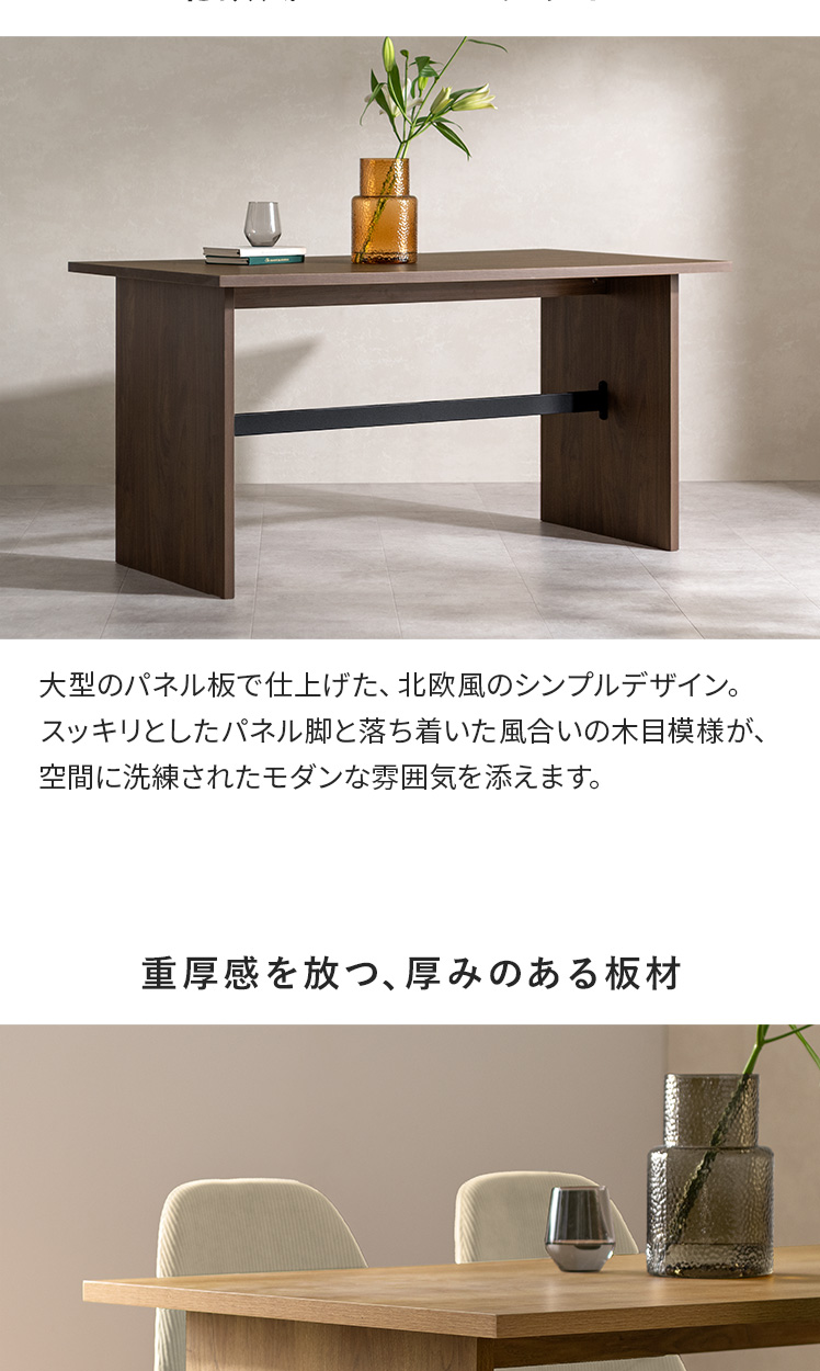 ダイニングテーブル Palen〔パレン〕 テーブル単品販売/木目模様が美しい、厚みのある大型パネル板で構成されたシンプルデザイン。面が際立つ端正な佇まいで、上質な北欧モダン空間を演出します。また、天板はオールメラミン仕上げで水や汚れに強く、美しさを長く保つことができます。広々としたサイズ感が、家族やゲストとの時間をゆったりと包み込み、日常の食卓を、より心地よく洗練された空間へと導きます。