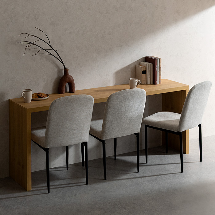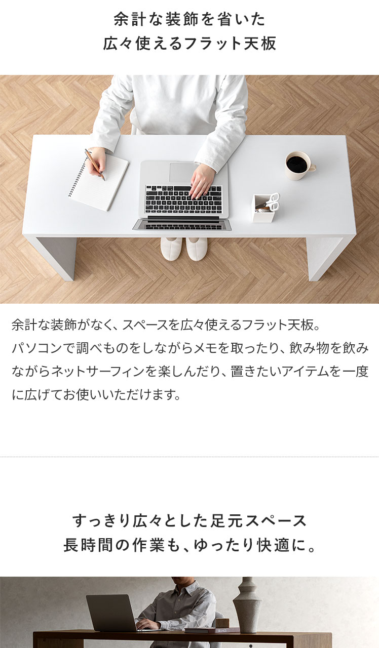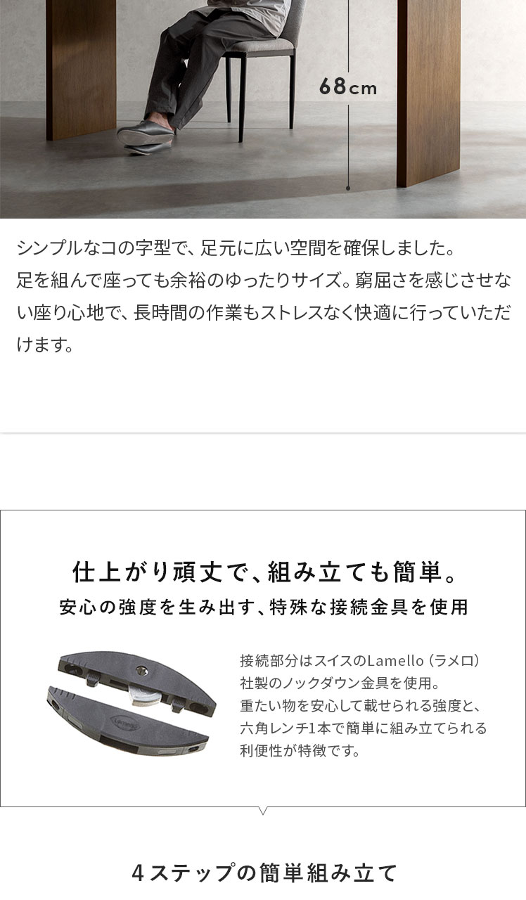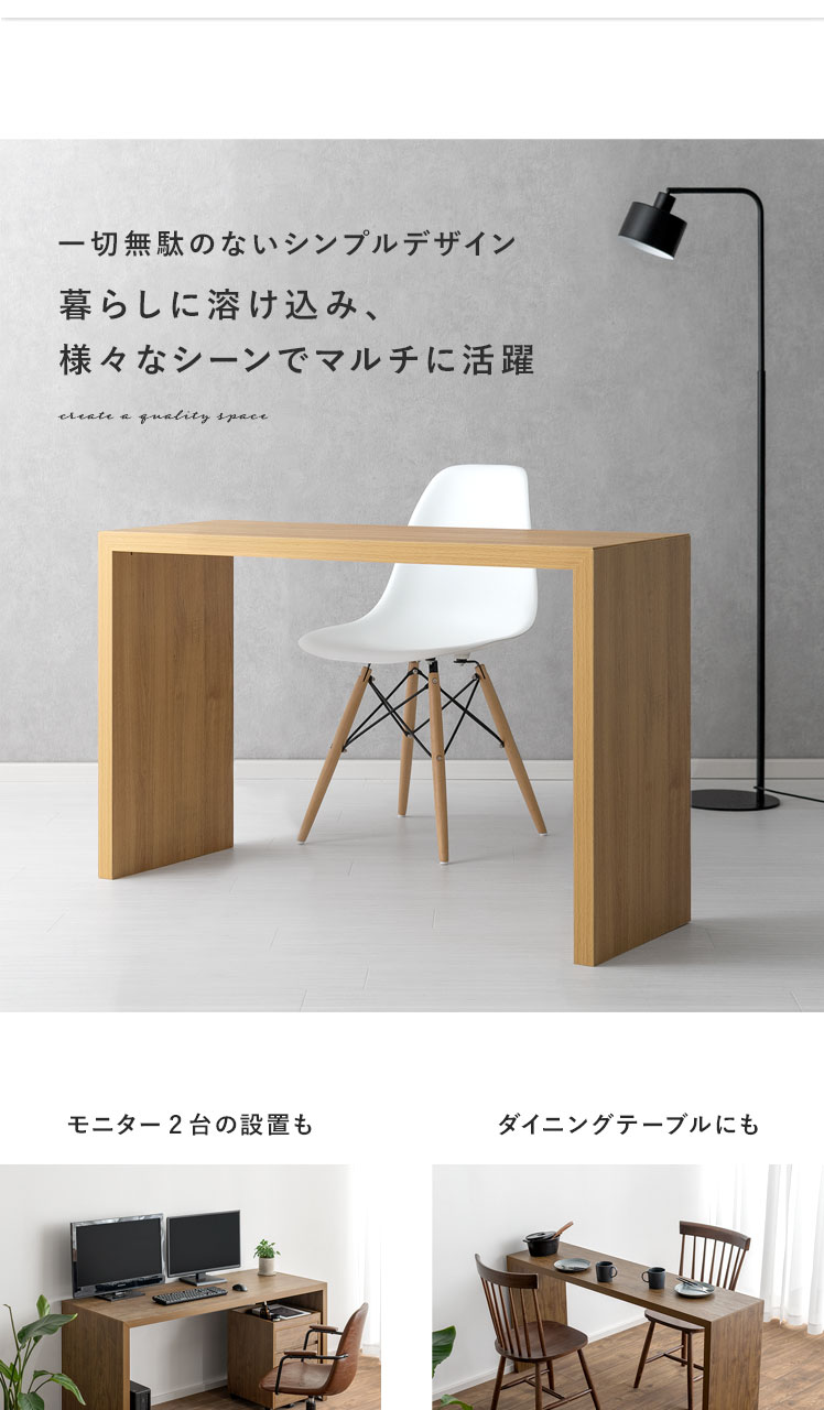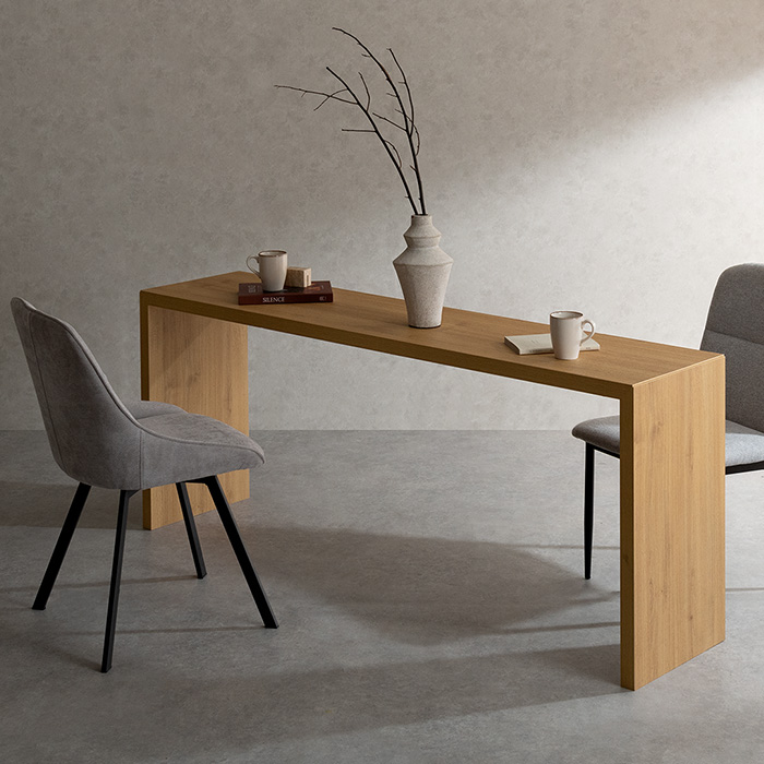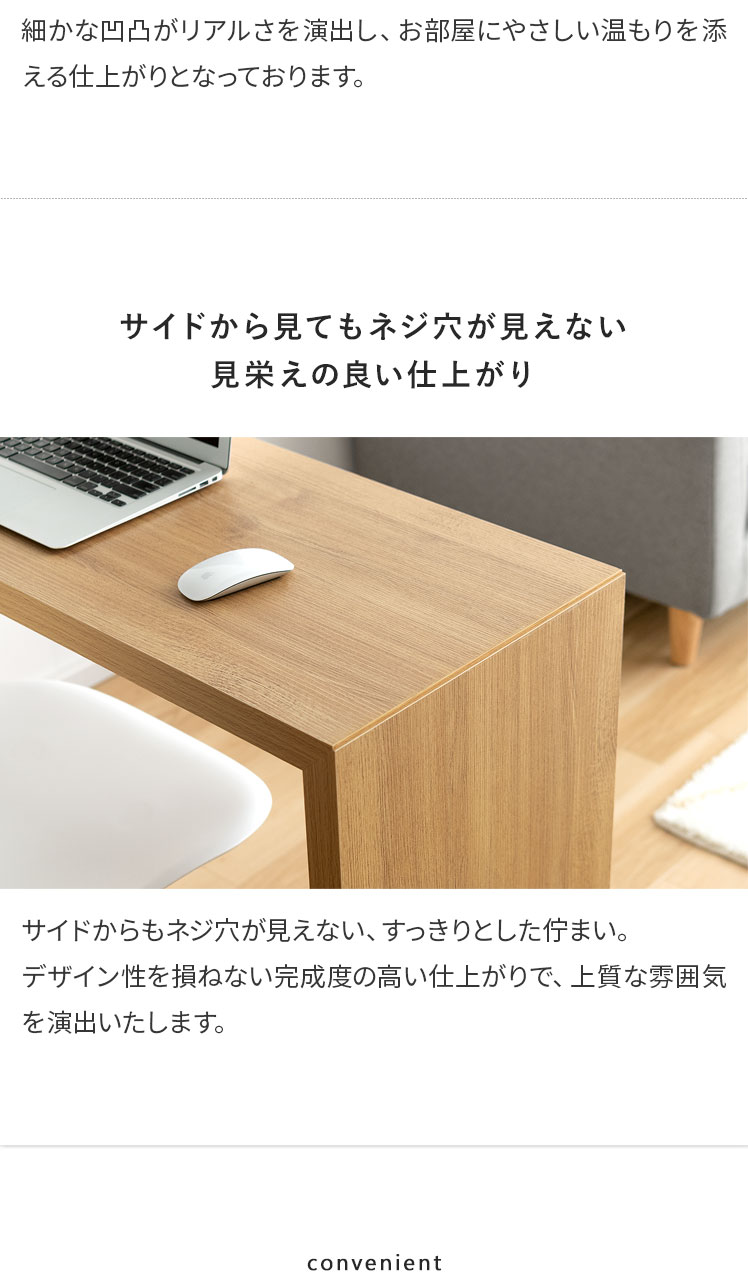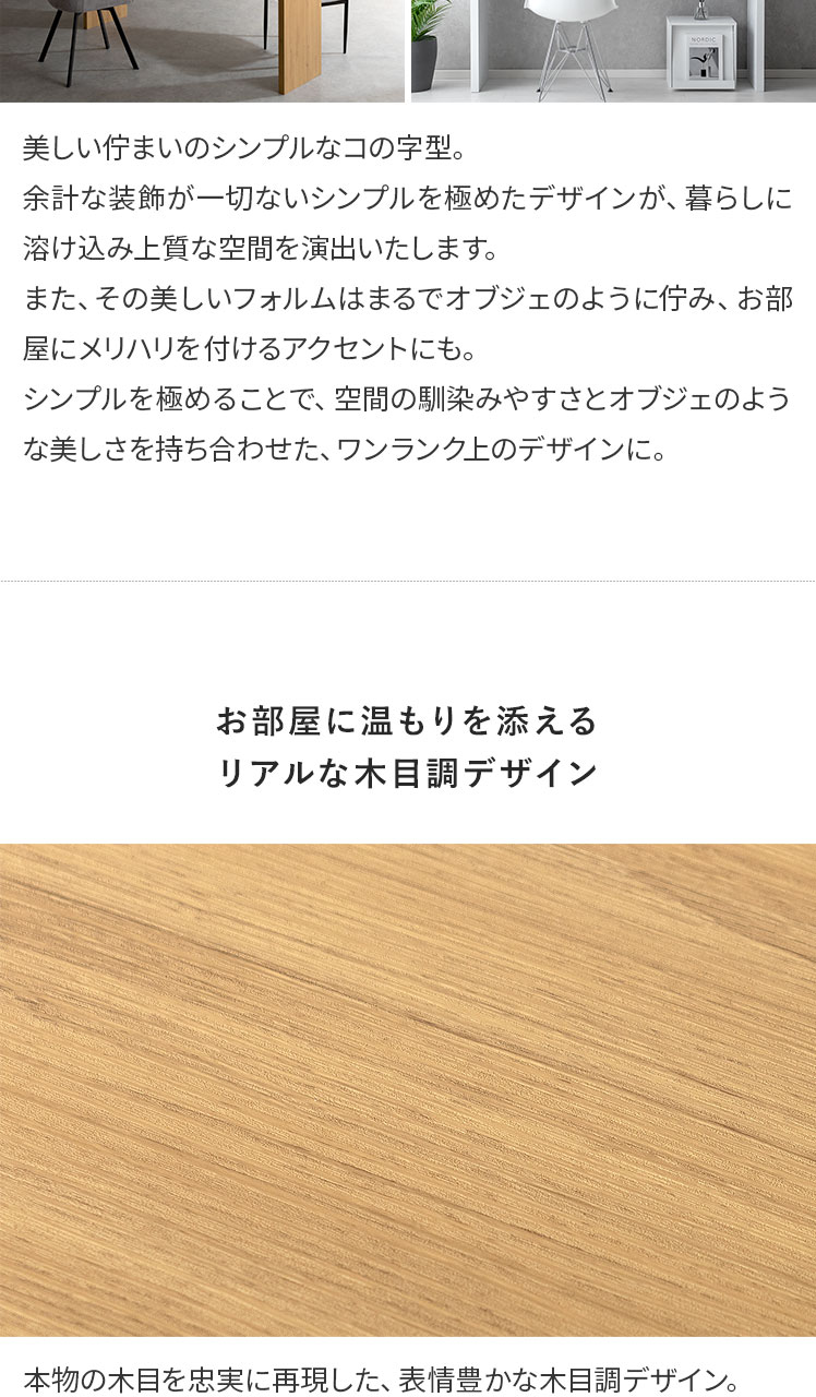 コの字型デスクVisage Neo〔ヴィサージュネオ〕スリム180cmタイプ/美しい佇まいのコの字型デスク。温もりを添えるリアルな木目調に、余計な装飾の一切ないシンプルを極めたコの字型が、上質な空間を演出いたします。お部屋に溶け込むシンプルなデザインは使い勝手も良く、デスク空間だけでなく、キッチンカウンターやダイニングテーブルなどとしてもマルチなシーンで活躍いたします。一切無駄のないコの字型デスクで、質の良い暮らしを。