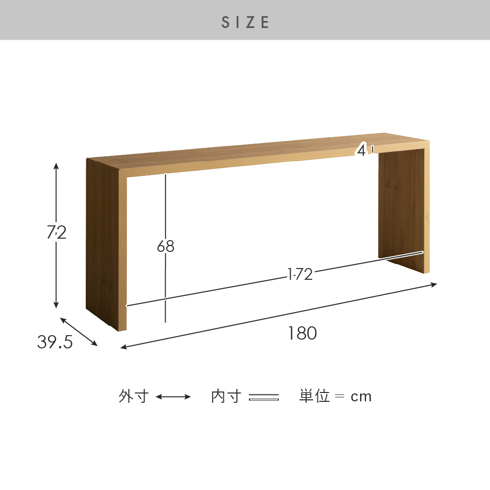 | サイズ | 幅180×奥行40×高さ72cm |