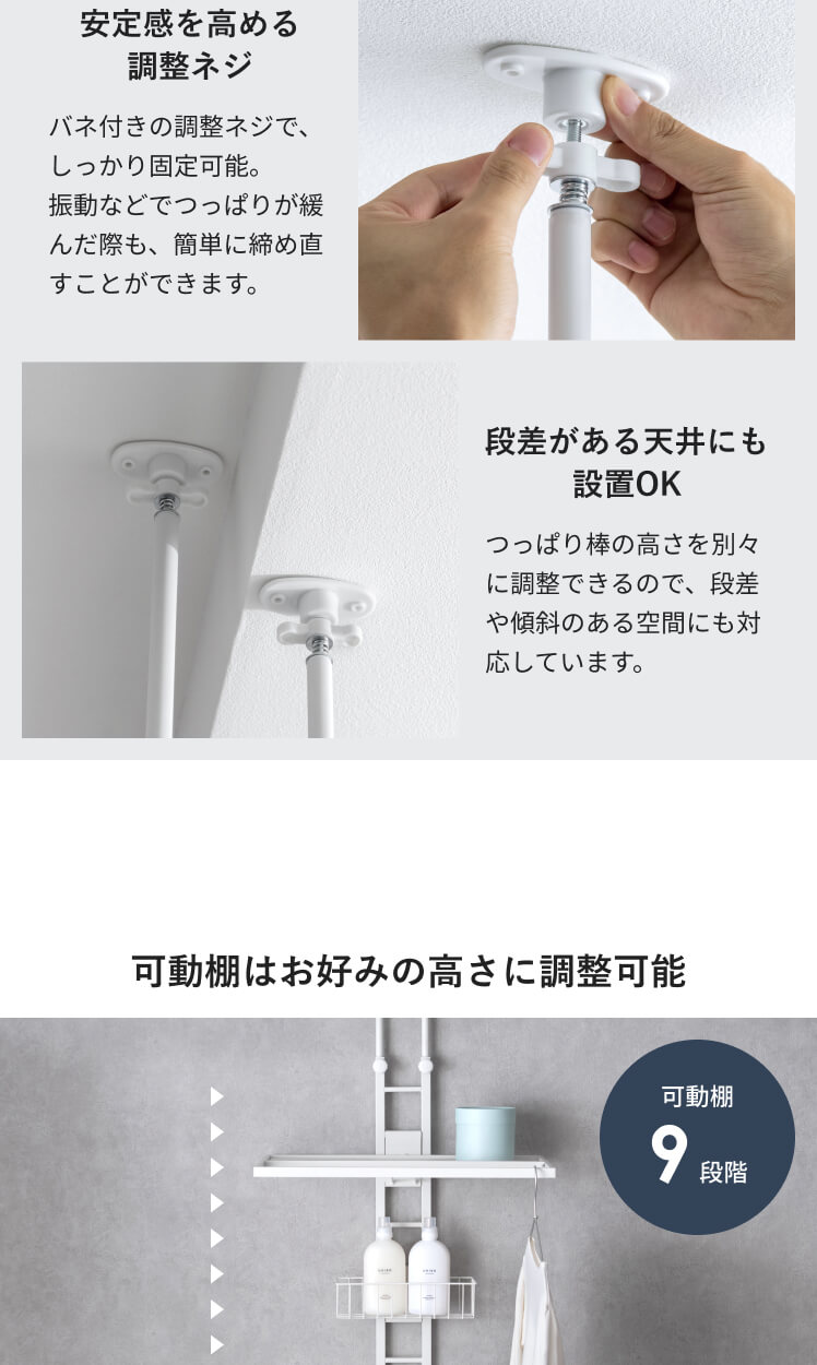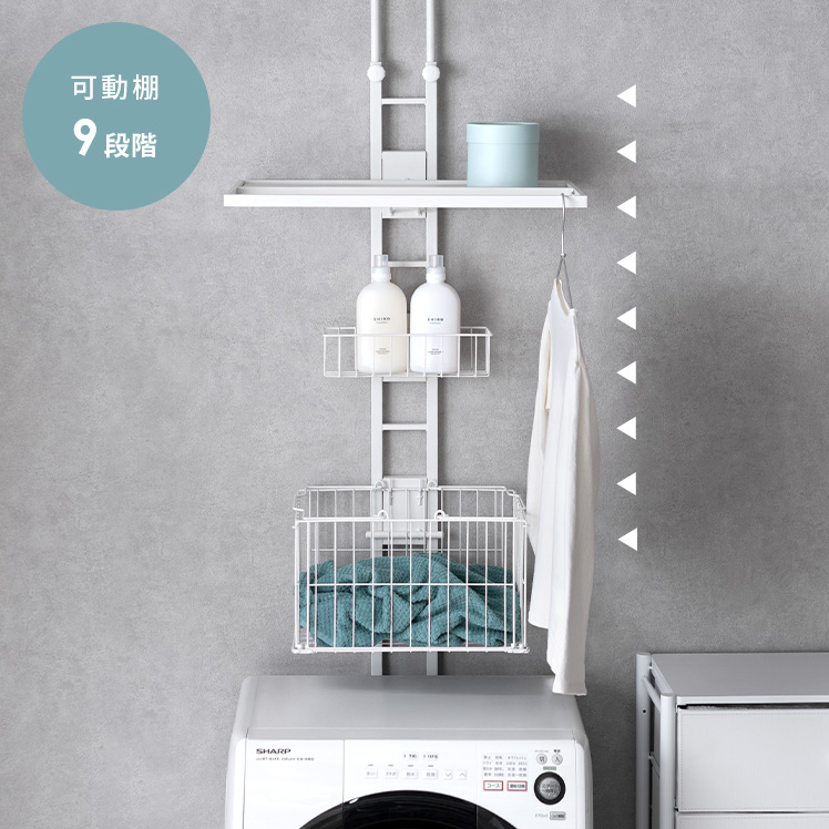 9段階 可動棚 洗濯機ラック ホワイト