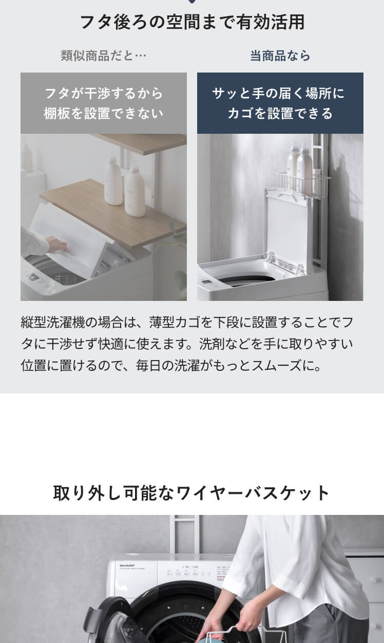 縦型洗濯機 ドラム式対応 小物収納 ワイヤーバスケット 棚