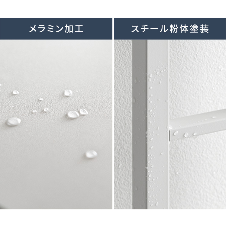 | 材質 | 合成樹脂化粧合板(メラミン)、スチール(粉体塗装仕上げ) |