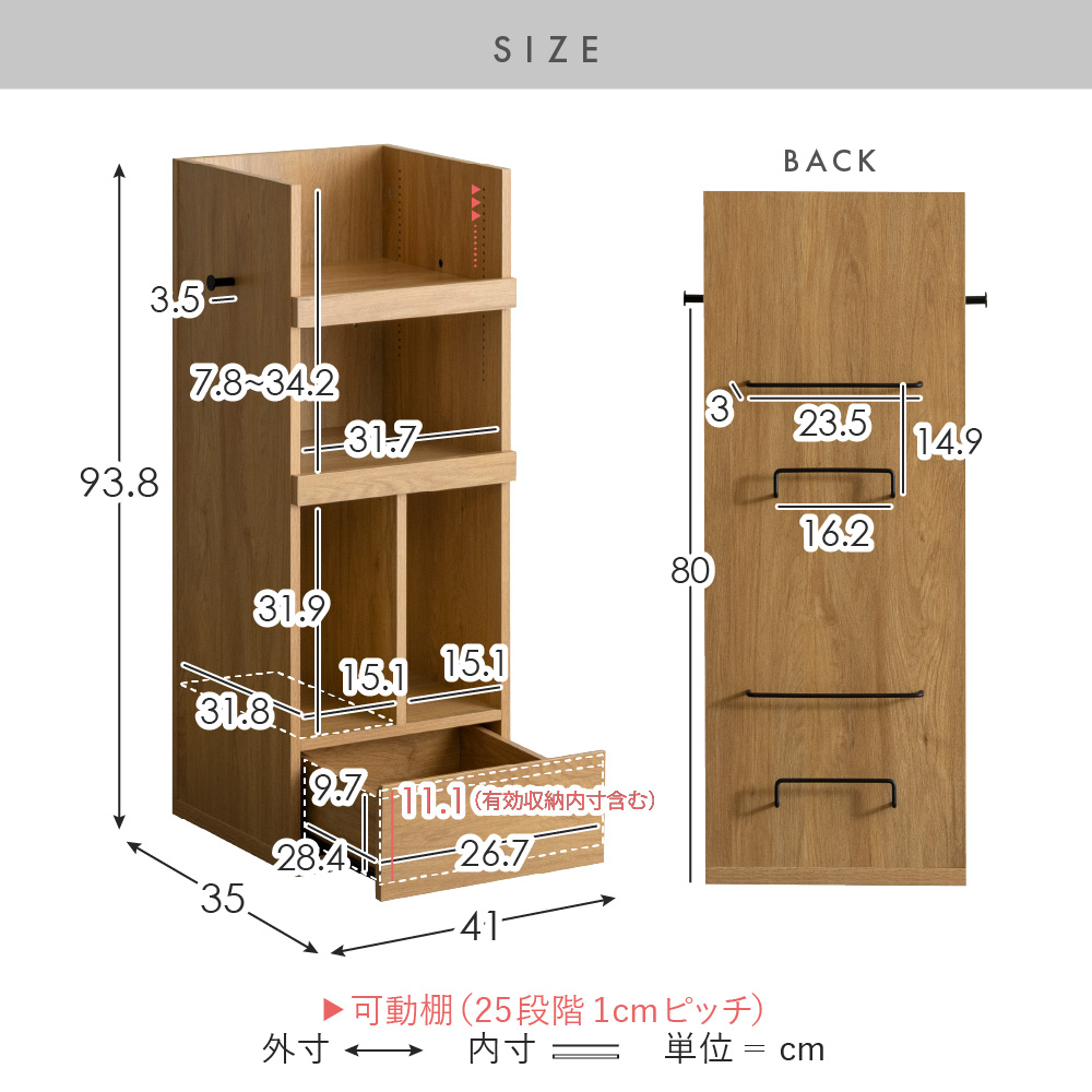 高さ調整 可動棚 コンパクト スリム 安心設計 省スペース