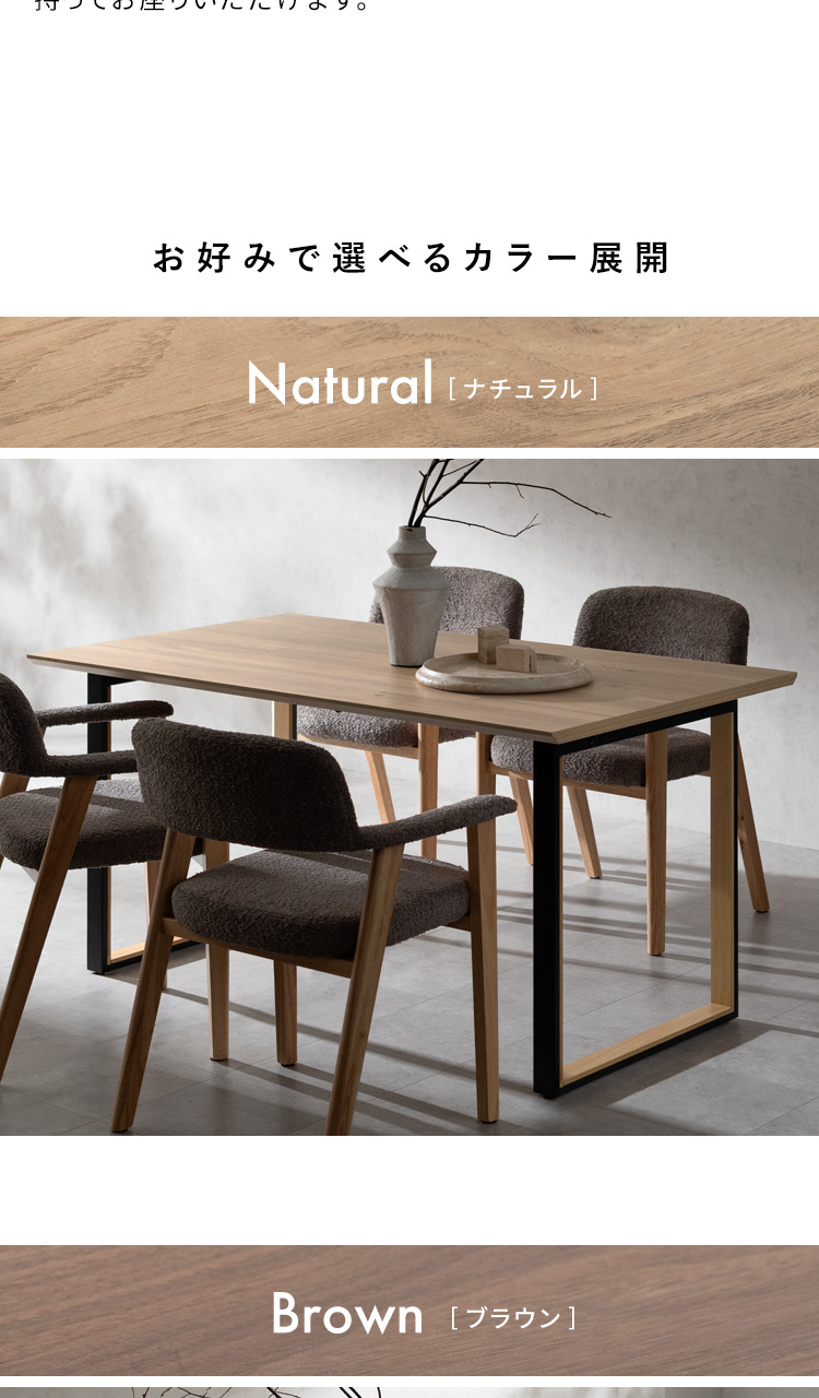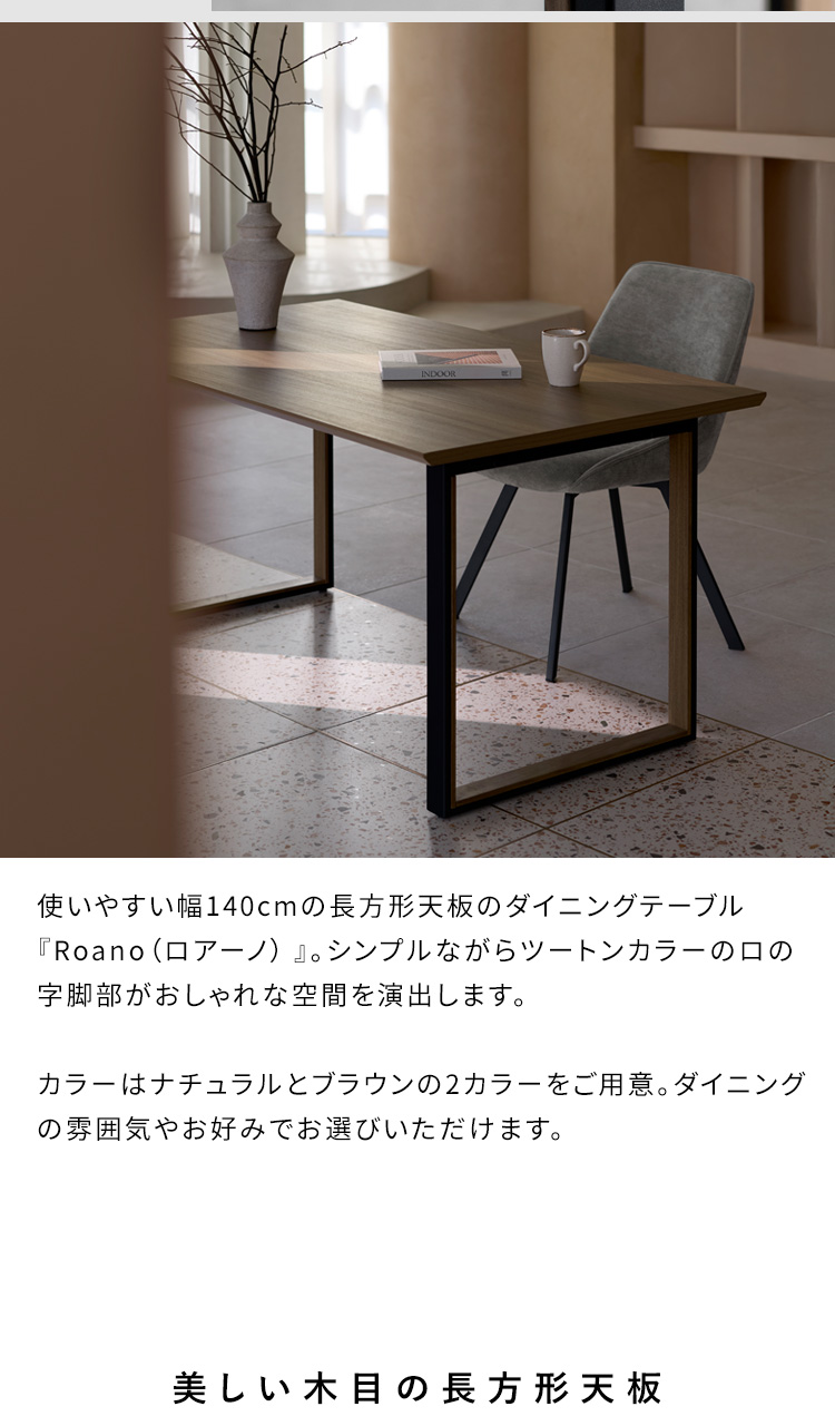 ダイニングテーブル Roano〔ロアーノ〕/シンプルながらツートンカラーのロの字脚部がおしゃれな空間を演出します。カラーはナチュラルとブラウンの2カラーをご用意。ダイニングの雰囲気やお好みでお選びいただけます。