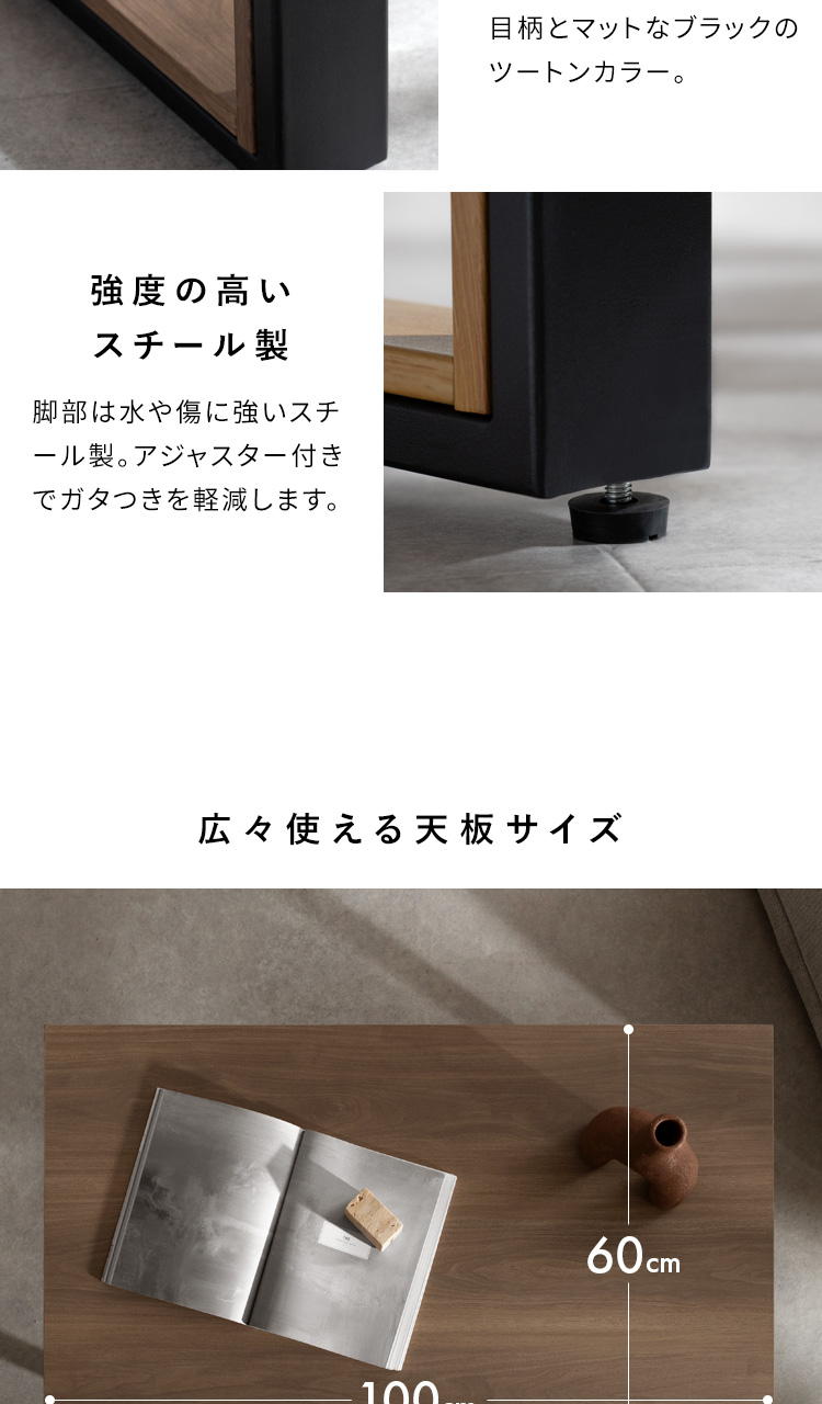 | 材質 | MDF(メラミン貼り)、スチール(粉体塗装、木目転写) |