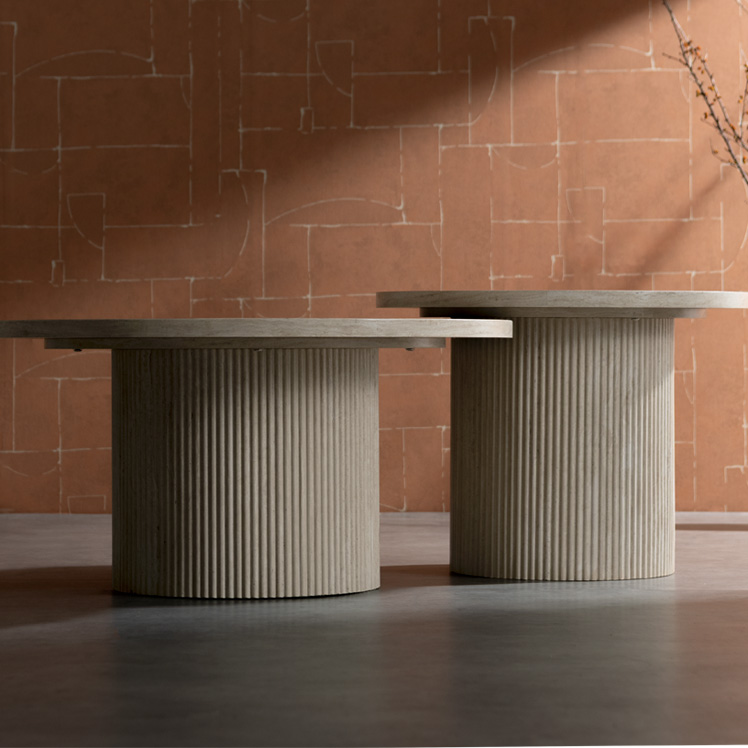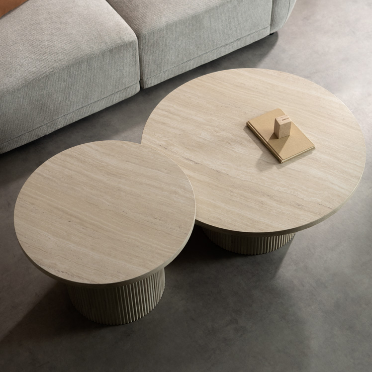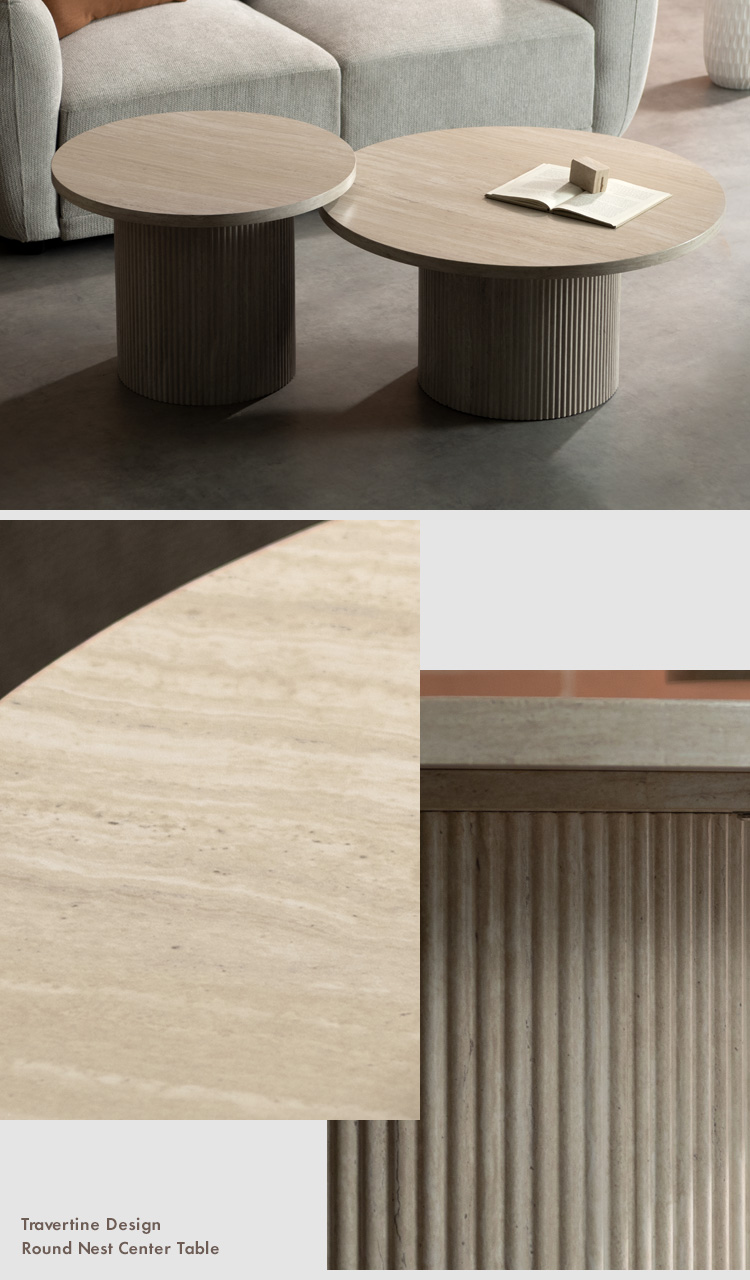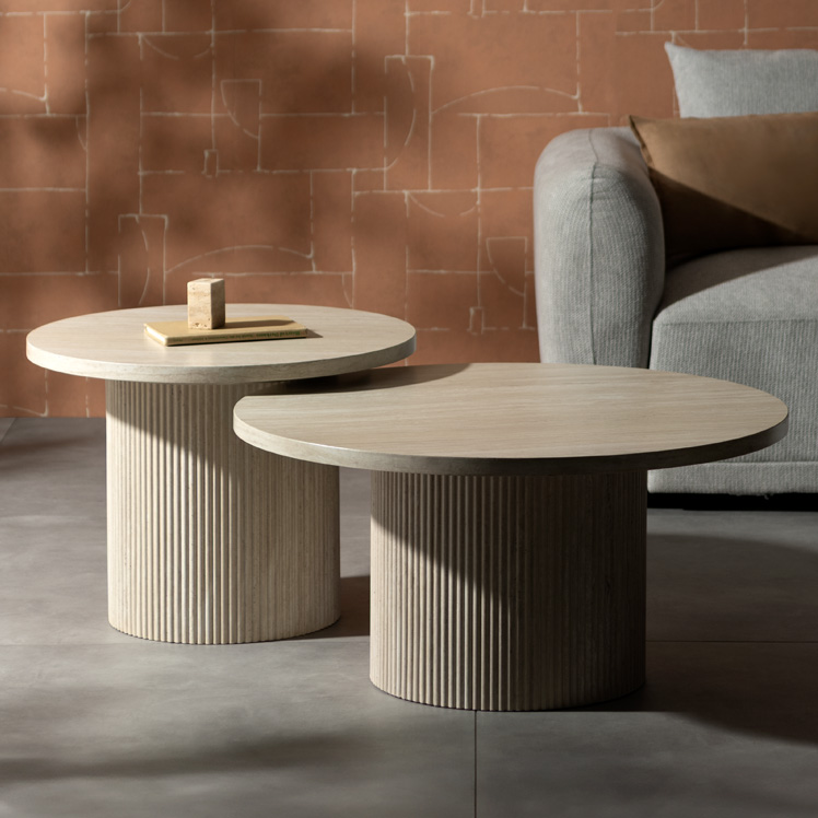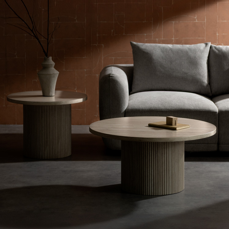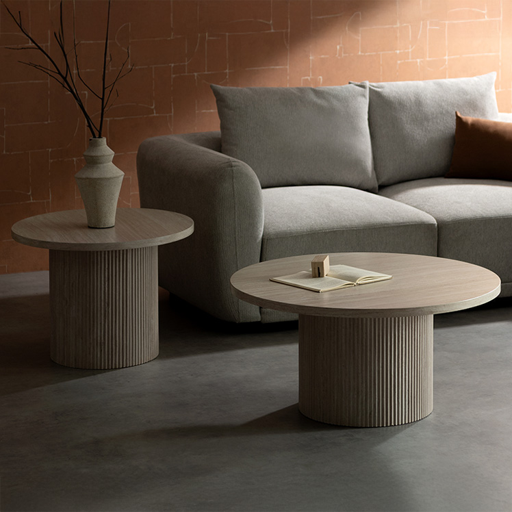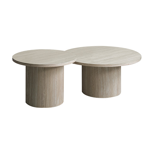 ネストセンターテーブル Sarnia〔サニア〕/サイズの異なる二つのテーブルは重ねたり切り離したり、自由なレイアウトが可能でリビングや寝室などお家の色々な場所でお使いいただけます。
