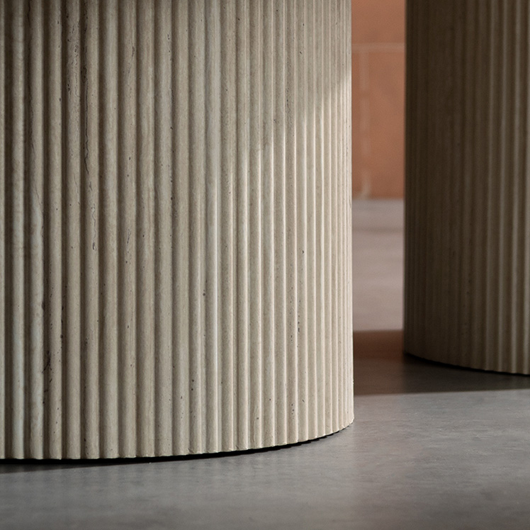 二個セット スクエアテーブル 彫刻風 大理石風 円柱 北欧