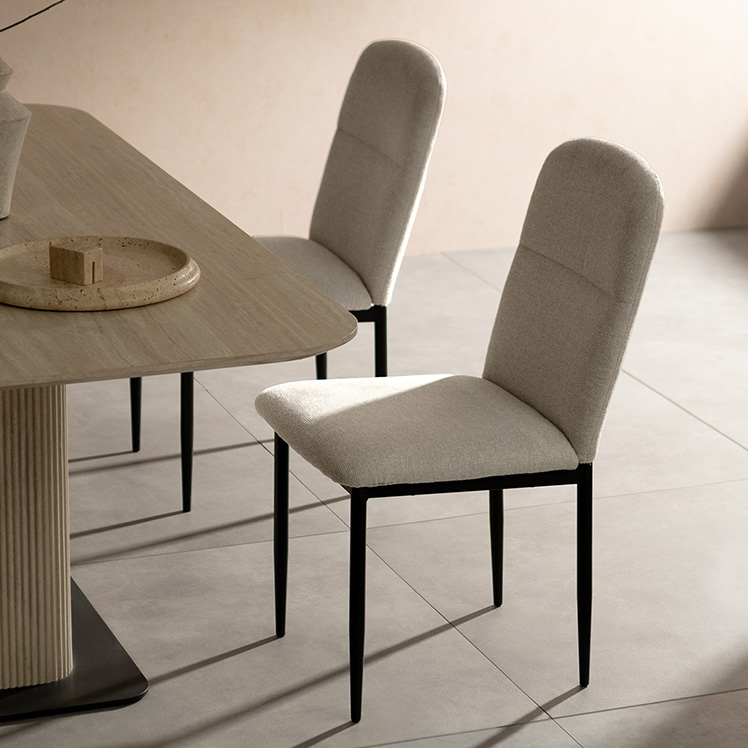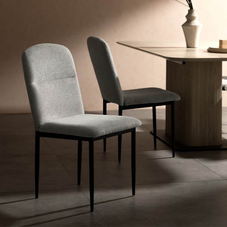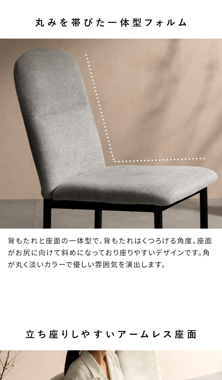 ダイニングチェア2脚入り Panola〔パノーラ〕/背もたれから座面まで一体型のリラックスできるチェアはアームレスタイプでラクに立ち座りできます。カラーはベージュとライトグレーの2カラーよりお好みでお選びいただけます。
