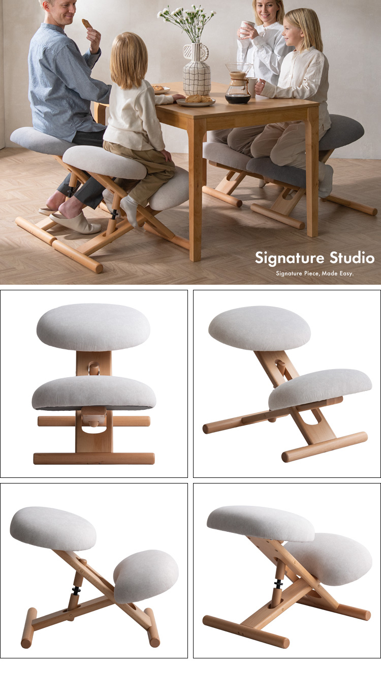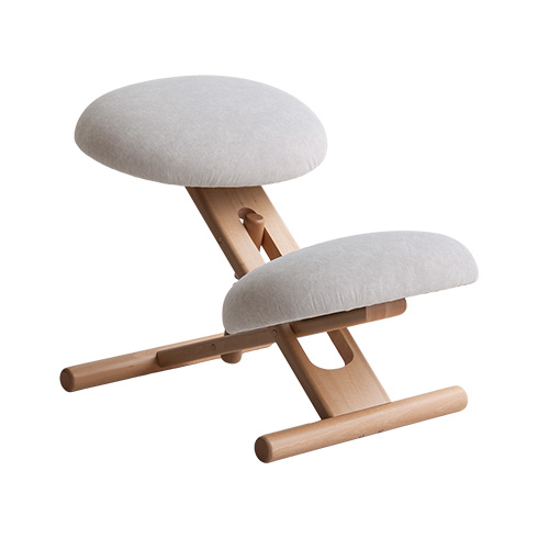 プロポーションチェアなら、斜めの座面が立ち姿勢のように骨盤が立つので自然と背中がS字カーブを描き、理想的な姿勢を作り出せます。