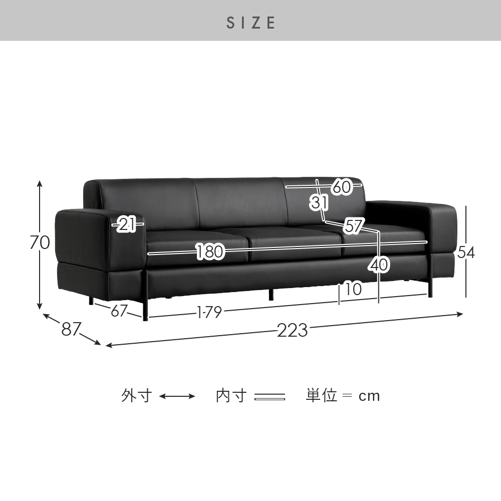 | サイズ | 約幅223×奥行き87×高さ70cm |