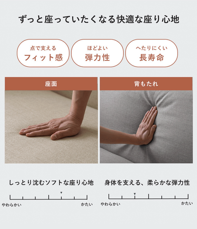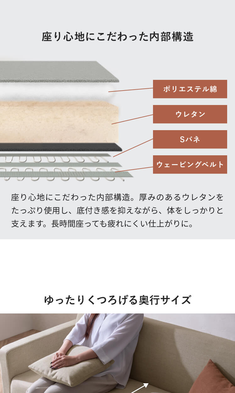 ナチュラル シンプル 北欧 モダン 素材感 ウレタン 広々座面