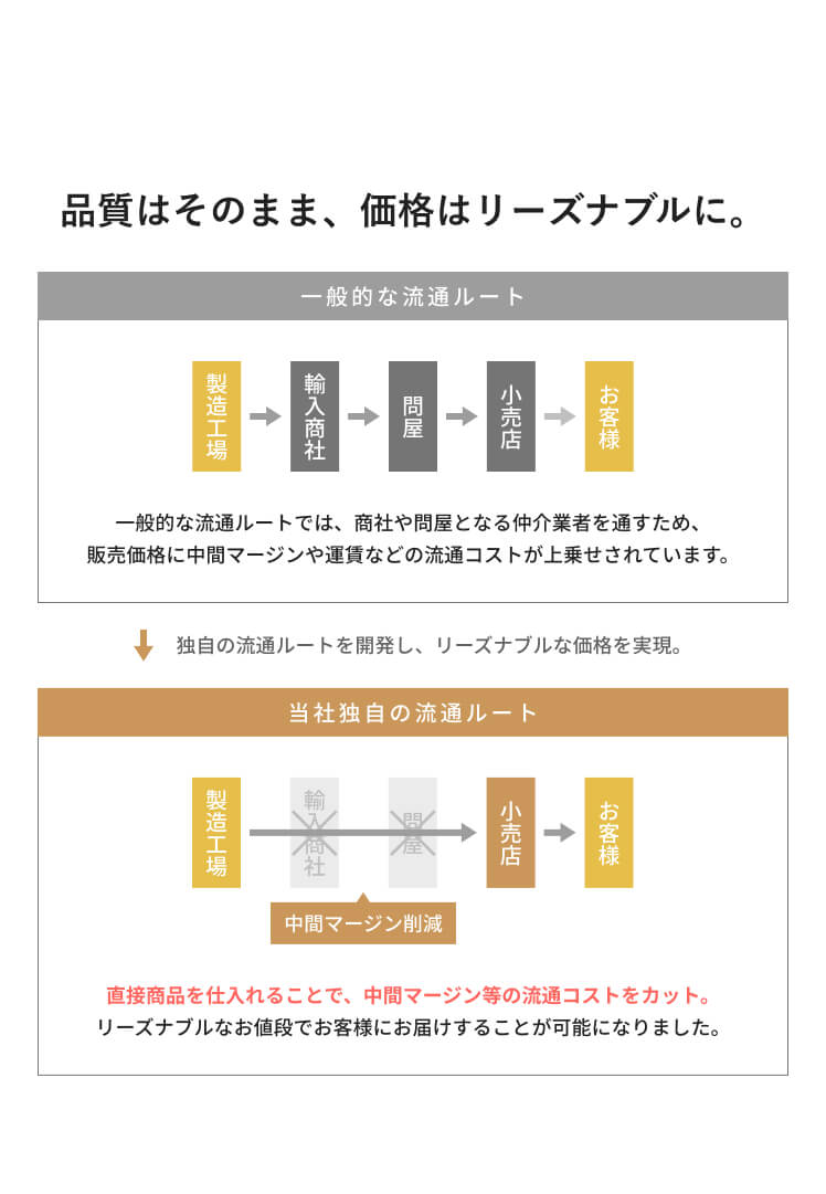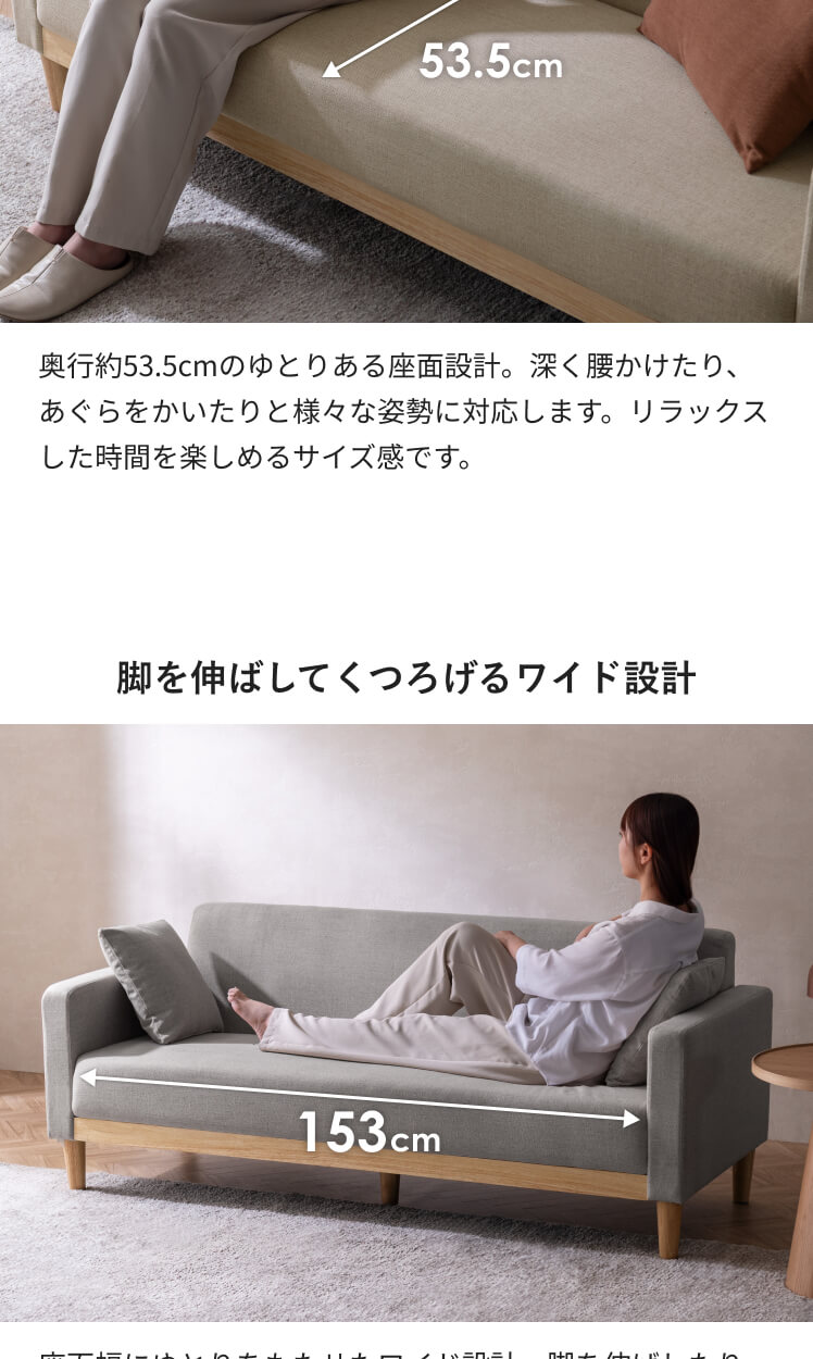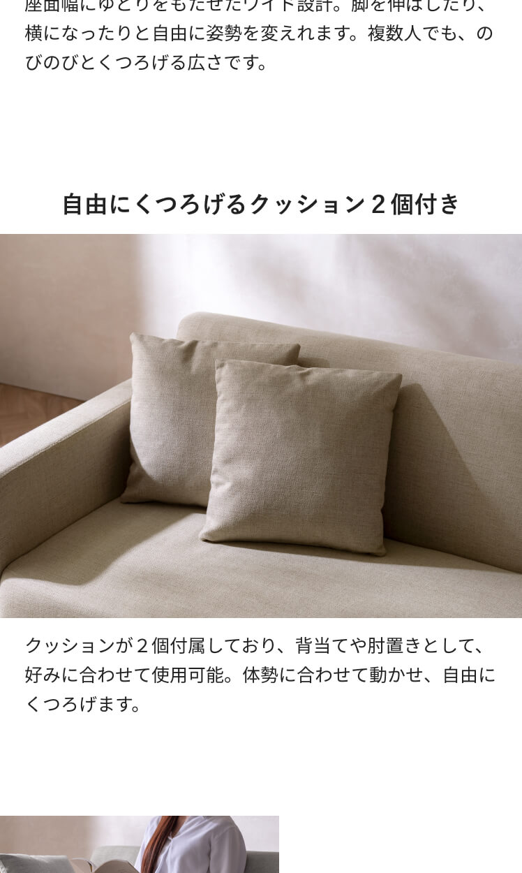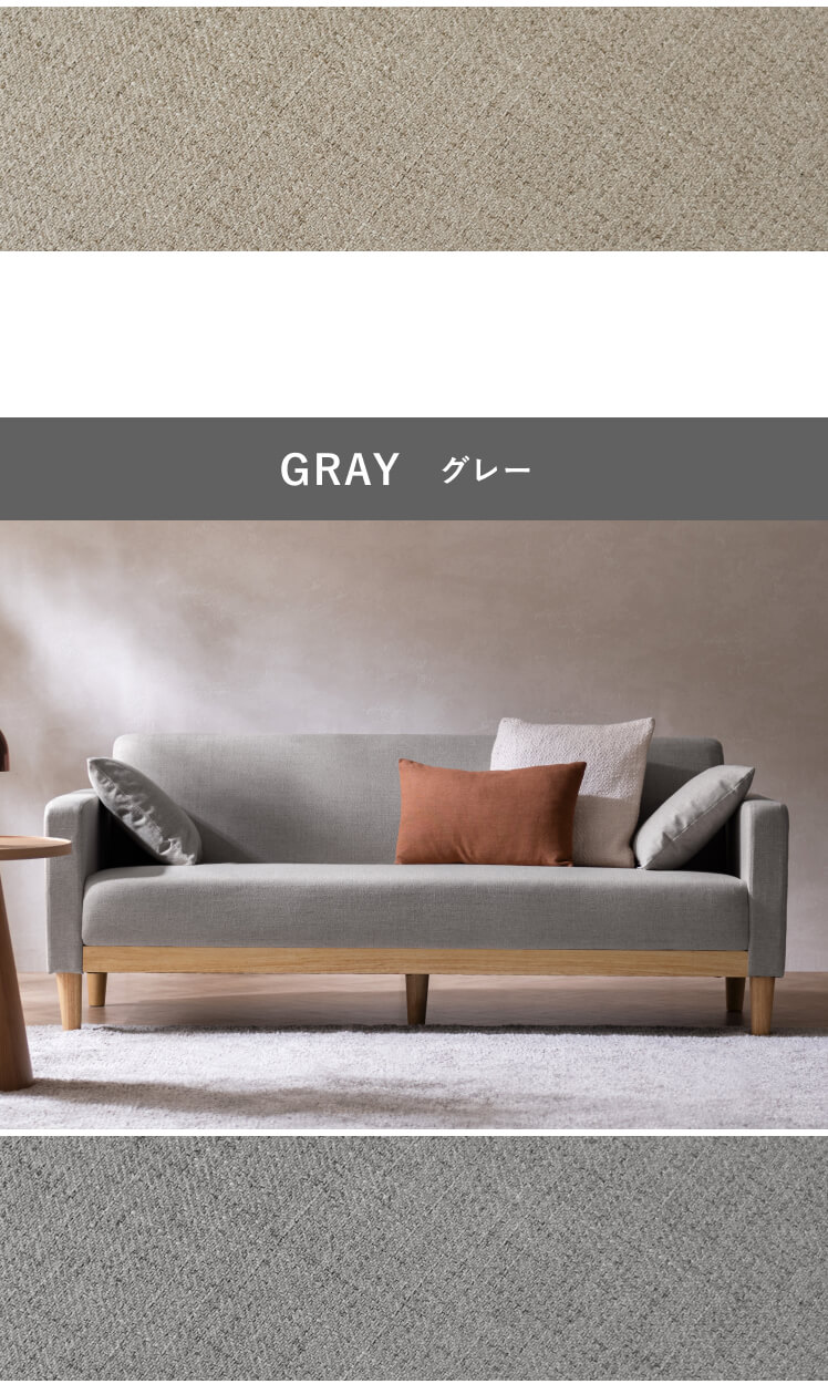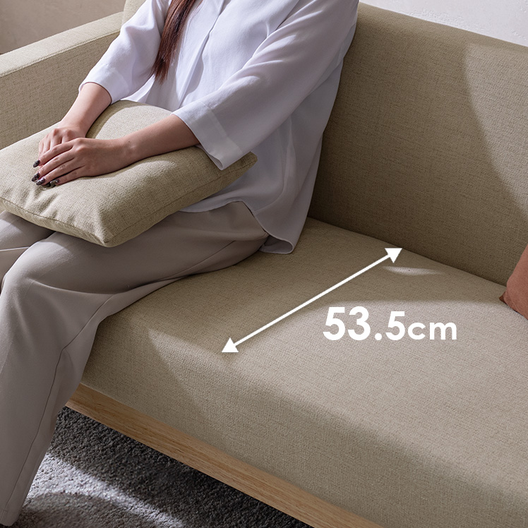 | 材質 | 本体/天然木、ウレタンフォーム、ウェービングベルト、銅製バネ 張地/ポリエステル100% クッション材/ウレタンフォーム、ポリエステル綿 |