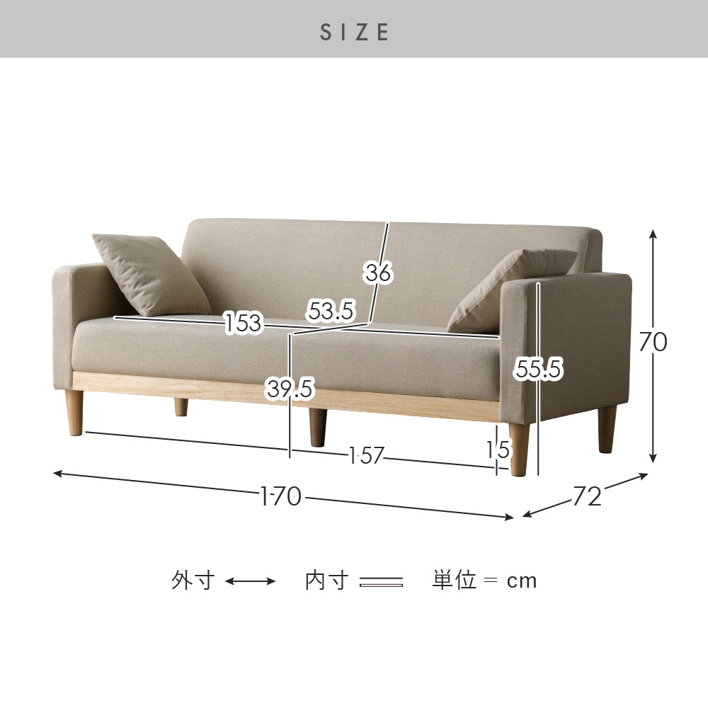 | サイズ | 約幅170×奥行き72×高さ70cm |