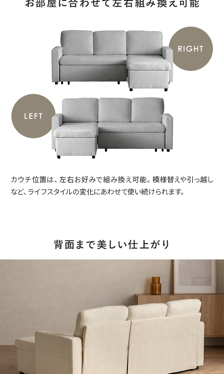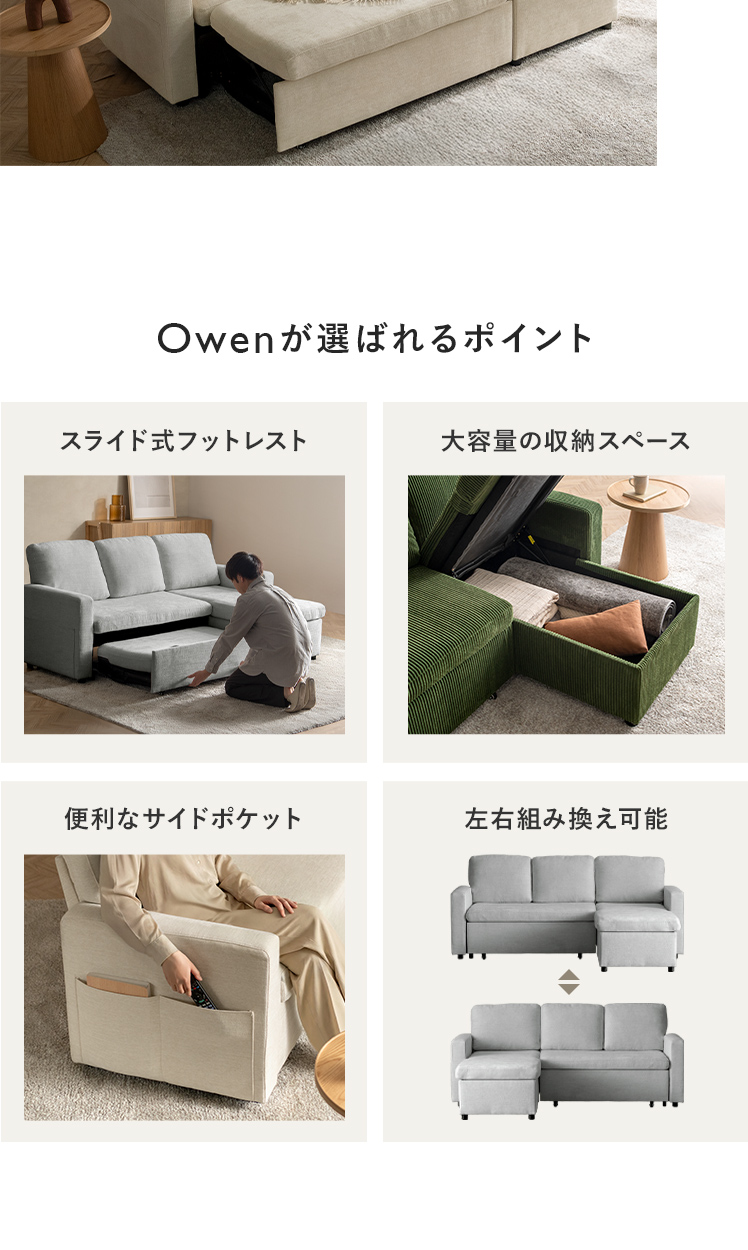 収納付き2WAYカウチソファ Owen〔オーウェン〕