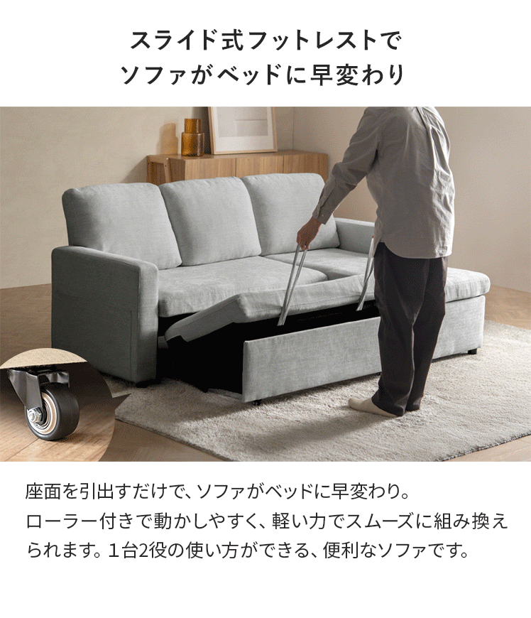 アームソファ フットレスト 幅204cm 2way 3人掛け 収納付き